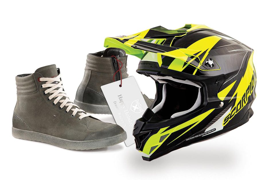 Next up are these bad dogs from TCX. We all know how important boots are in motocross, but oddly enough, a lot of guys who ride dual sports end up just wearing regular shoes when they’re on the street. That’s insane! Higher speeds, harder surfaces, and traffic that’s much more dangerous should warrant a bit of foot and ankle protection. Luckily TCX has taken this into account with their $219.99 CE Certified X-Groove Gore-Tex boot. Made from full-grain leather, this boot has reinforced ankles, heels, and toes to deal with the rigors of riding, but won’t stick out like a set of Doc Martens at the friggin’ Catalina Wine Mixer. Getting in and out is a snap too, thanks to the lace-up closure and side zip system. There’s even a removable shift pad! And thanks to the breathability of Gore-Tex, these boots will keep your feet comfy, rain or shine.