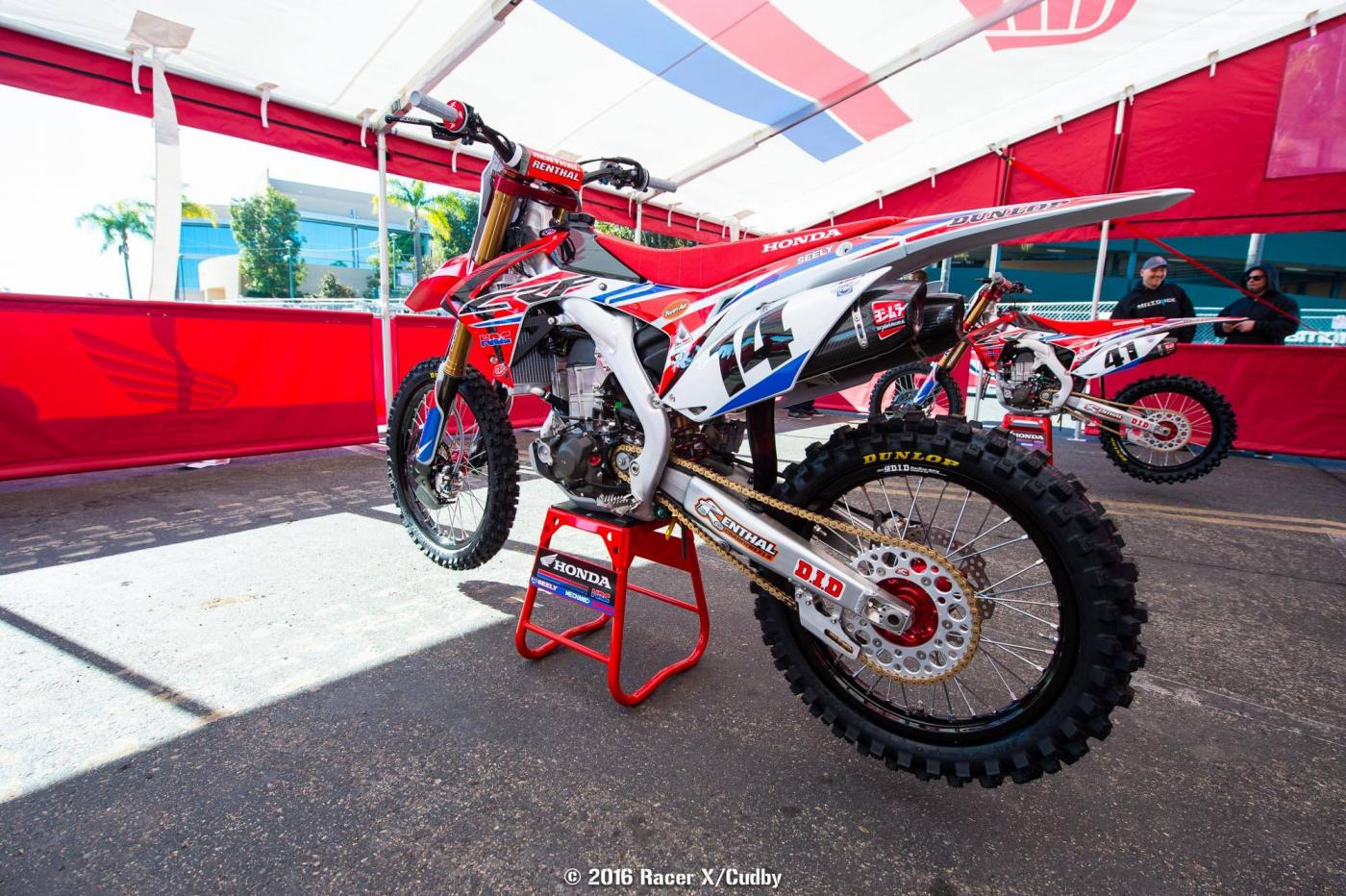And speaking of Honda, can Trey Canard and Cole Seely get their first 450SX supercross title in 2016? Marvin Musquin has finally moved up, and Christophe Pourcel finally has a solid 450SX ride—what will they do and what might be a tricky track tomorrow night? Will Justin Barcia bring the same speed and confidence he showed last summer and fall? And nothing brings more questions and intrigue than the return of James Stewart to the Yoshimura Suzuki team. Jason Anderson, Will Hahn, Justin Bogle, Jake Weimer—all were 250SX champs hoping to get into the 450 mix in a truly stacked field. It’s actually going to be hard to even qualify with so many fast men out there now.