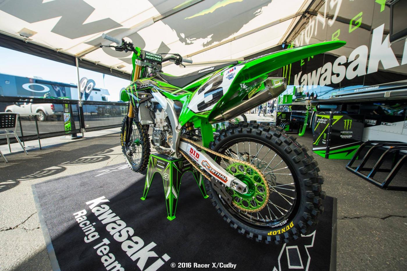It was raining hard outside, but that had no affect on the mood inside the building. Kawasaki needs to put 2015 behind them, and 2016 is looking bright. Their team is stacked and everyone is anticipating the gate drop to see if ET3 can get Kawasaki back to the top of the podium. The weatherman is predicting rain come race day, but we’ll have to see. He’s been wrong before.