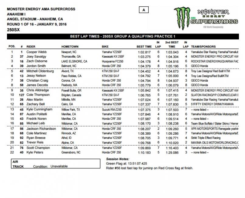 | 16 | Trevor Reis | 1:06.971 | +15.121 | San Diego, CA | Yamaha YZ250F | |