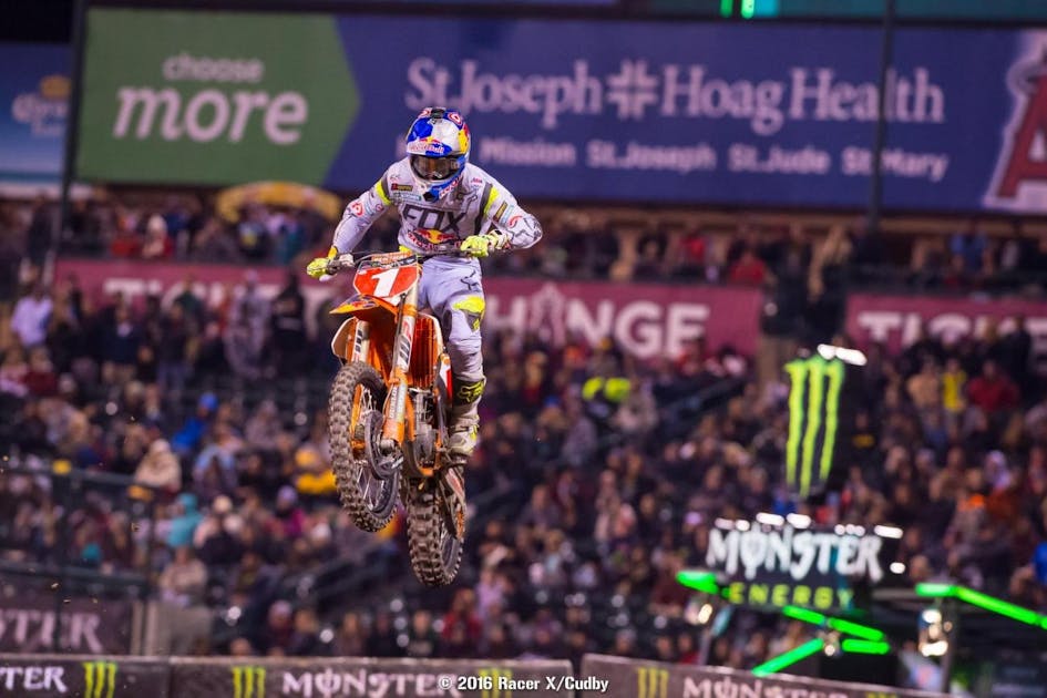 Last night at the 2016 Monster Energy Supercross opener in Anaheim, defending 450SX champion Ryan Dungey collided with James Stewart early in the main event. Stewart hit the ground hard, forcing the main event to be red flagged. He was eventually taken off the track by the Asterisk Medical Crew.