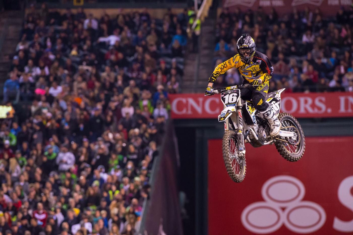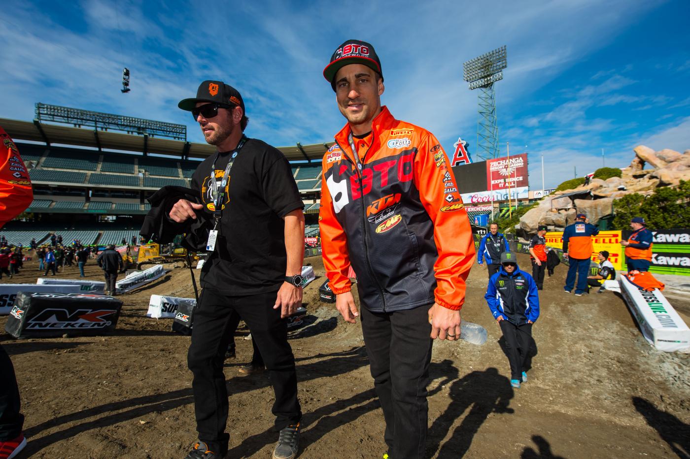 Justin Brayton: Honestly it is. You’ve heard a lot of people say it. You look at the list and it’s pretty amazing. A night like tonight, I have a feeling it’s going to be like this a lot. It was chaotic; people everywhere. The heat races are like main events were last year as far as how stacked they are. But as a rider it’s pretty fun. It’s challenging for one. You got to be on top of your game. It’s going to be a fun year. Like you said, I’m already having a better year than I did last year. Last year was a big struggle from the time I started riding. Just I couldn’t stay injury-free. I think that’s a big thing and now being comfortable with the bike. I think having a top ten here I can only build off of it. I know it’s kind of cliché to say that, but it really is true. Excited to get this one out of the way and start building. – Matthes