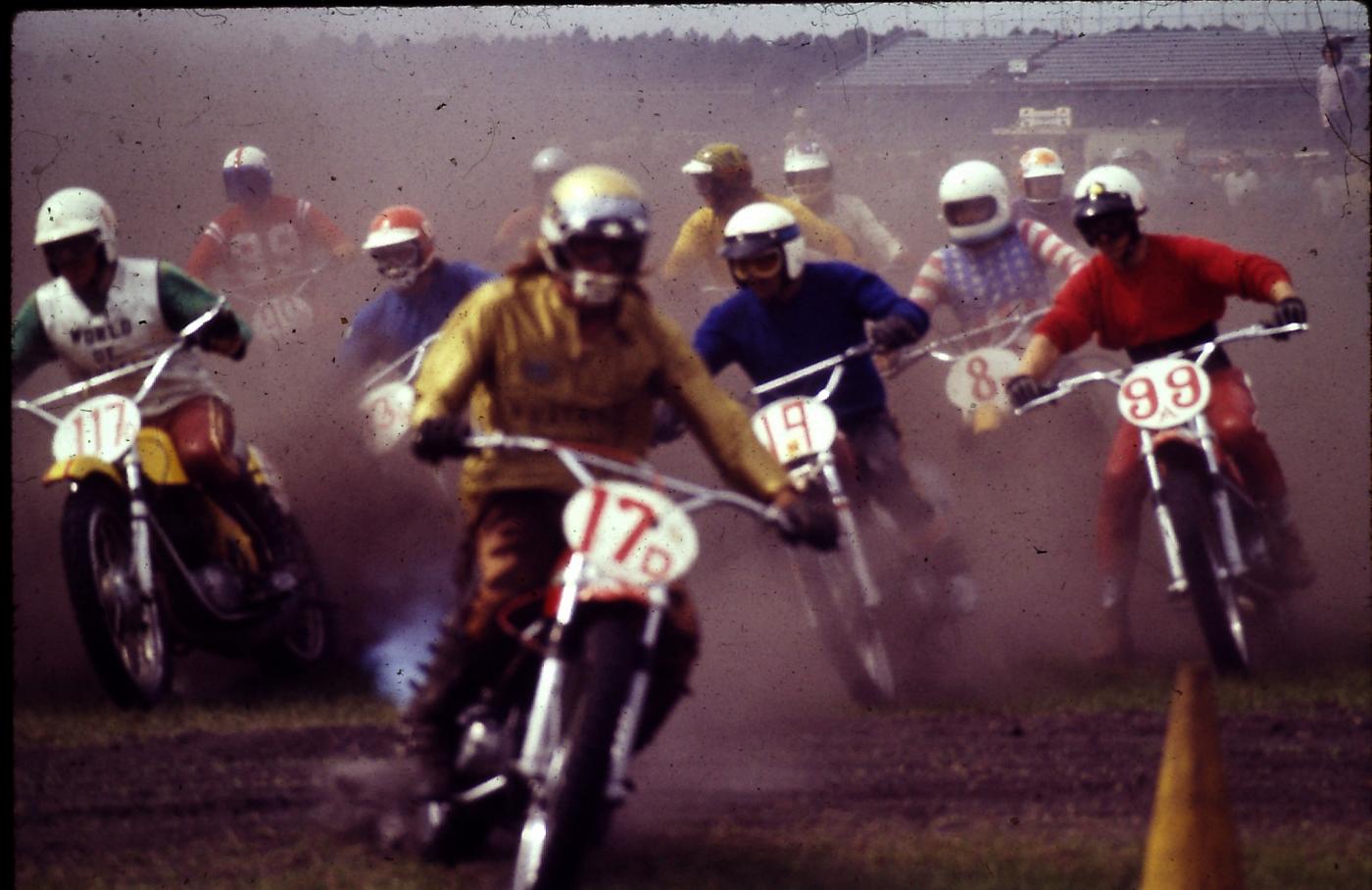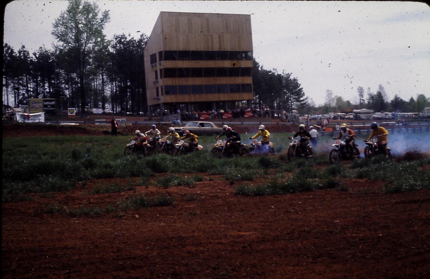 Talladega's Alabama International Speedway held a race on its infield, using the paddock and garage for the motocrossers as part of a 1974 Motorcycle Week, but it was scheduled on top of the last round of the AMA Motocross Championship that year in New Orleans. So they held a women's race on the infield of the speedway, and the winner was Crystal Champion, who rode a 100cc Yamaha.