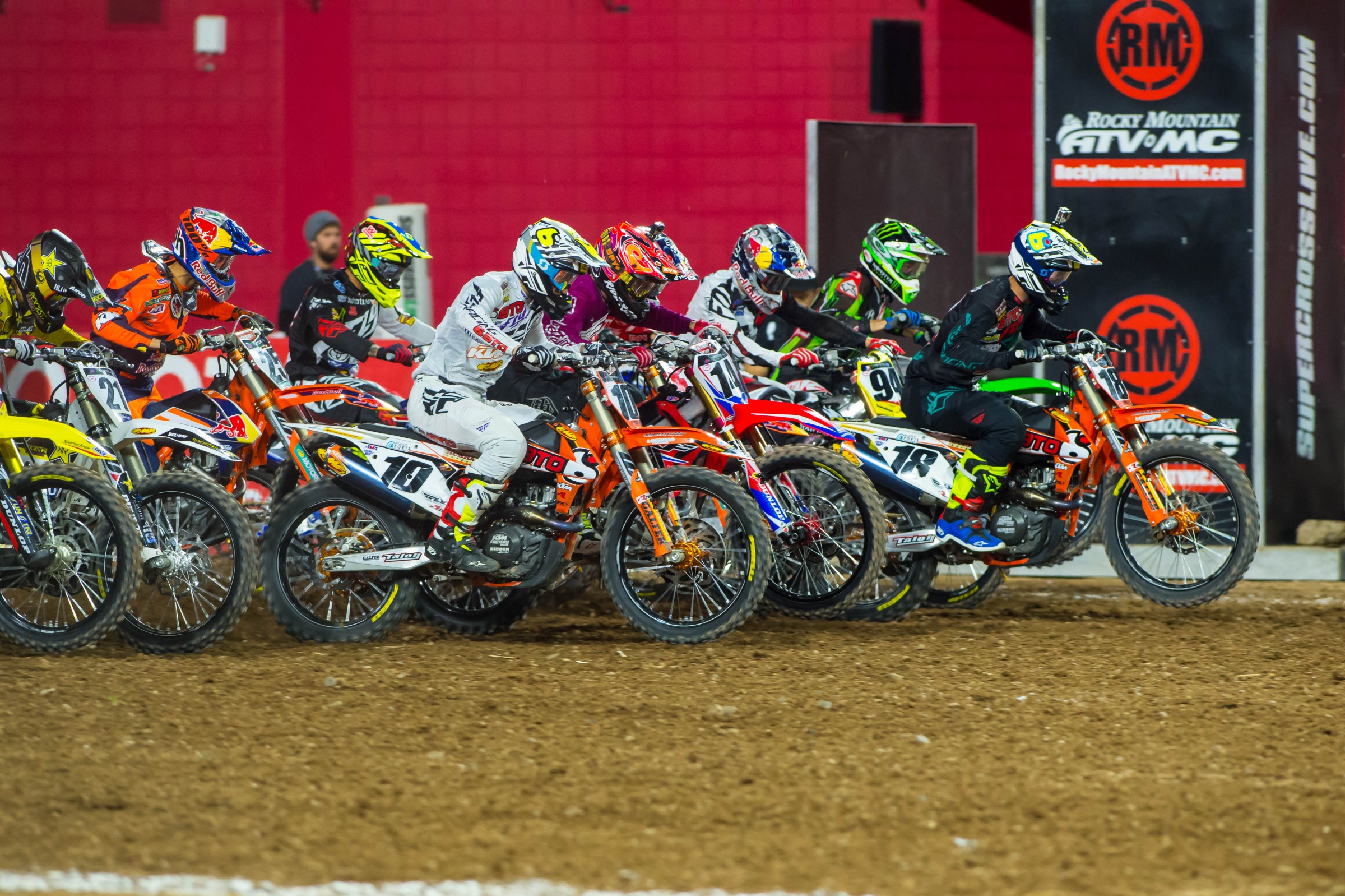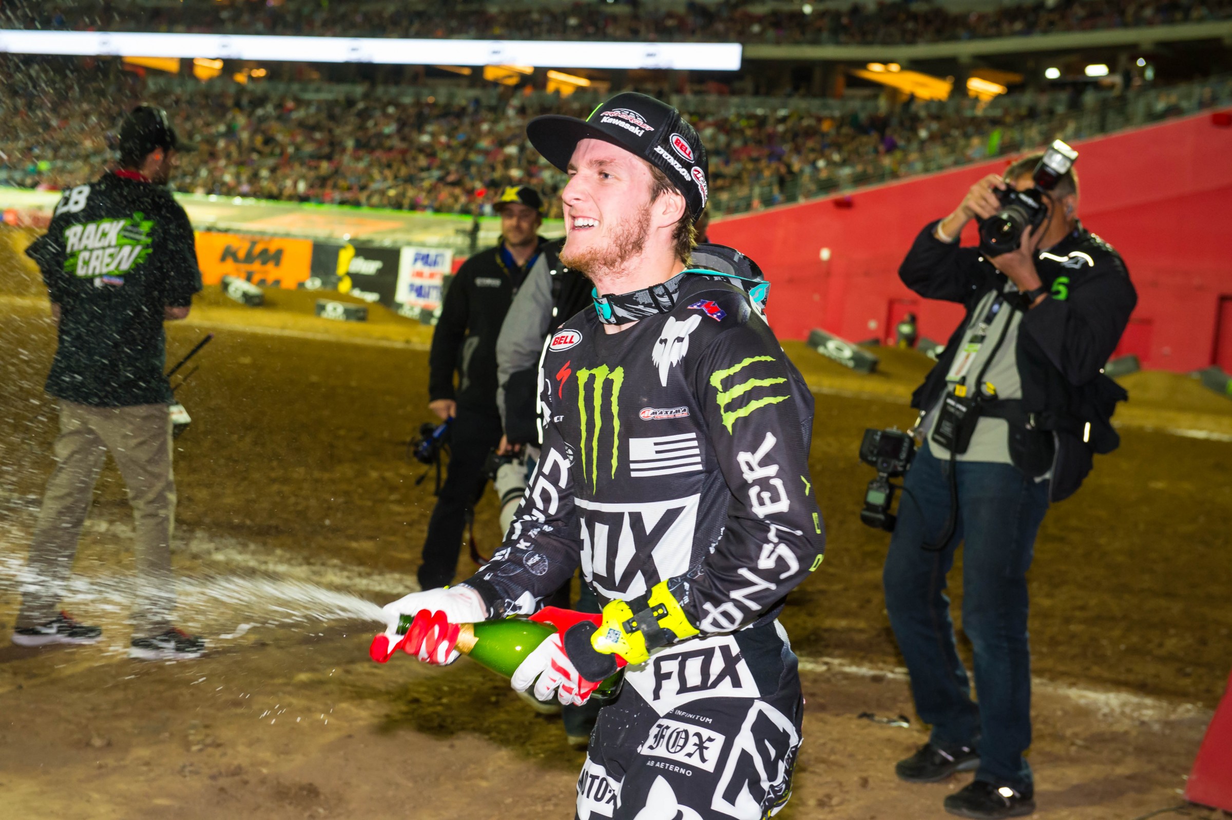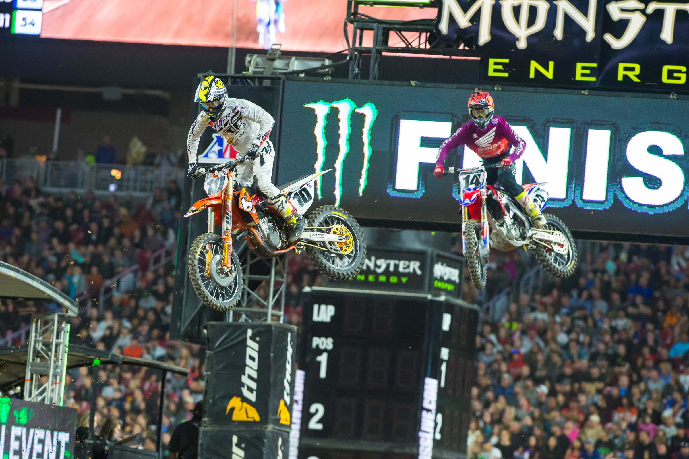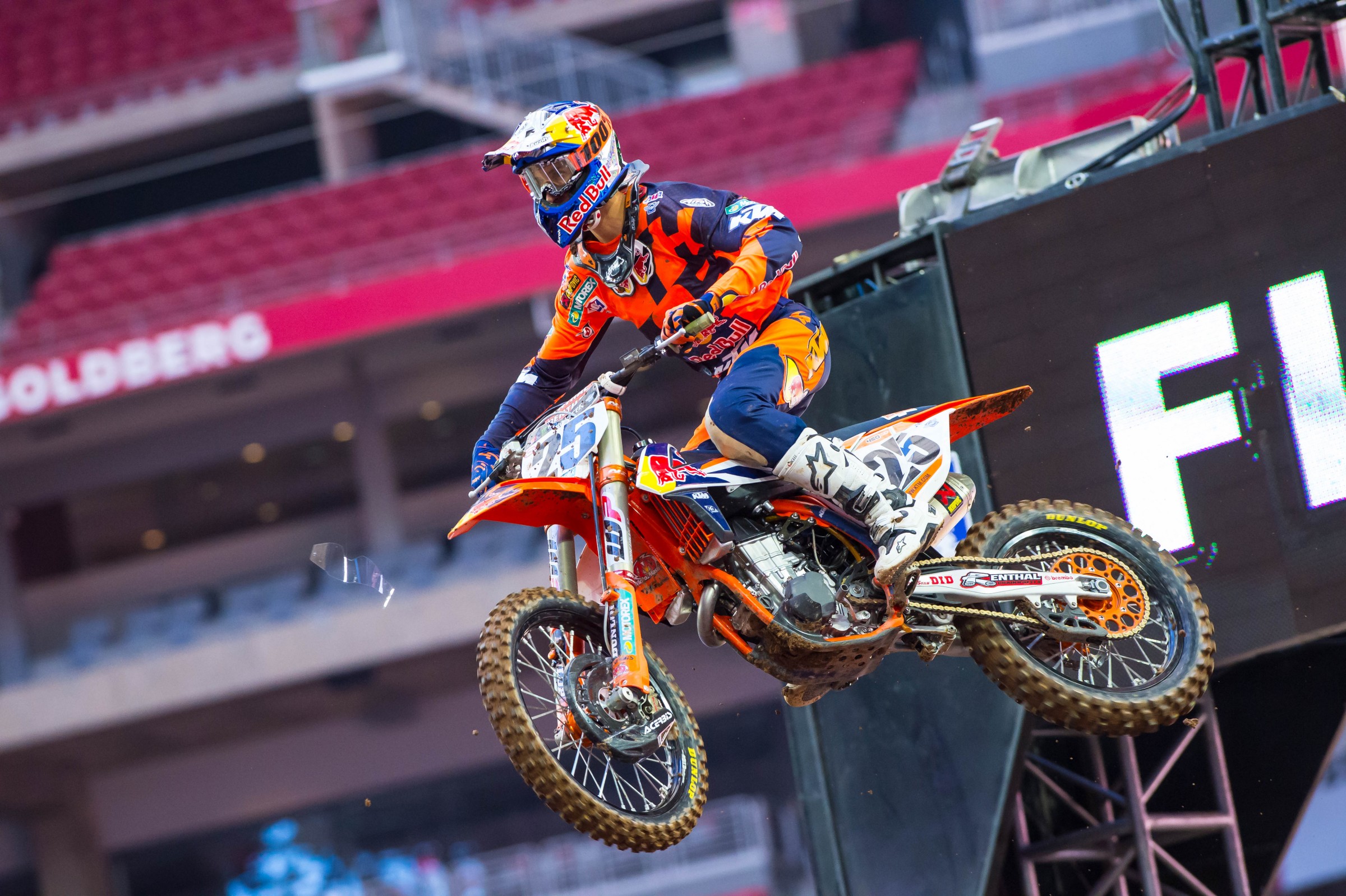 Yeah. The dirt kind of felt pretty typical Phoenix dirt. It had a hard base and it had some traction in some areas and then it was really slick in others. That start was something I’ve never seen before. It was literally the length of the stadium. It was pretty gnarly and wide open. In the main event I was able to sneak around the inside and make it work. But I still need to be better with my jump and getting across the pad.