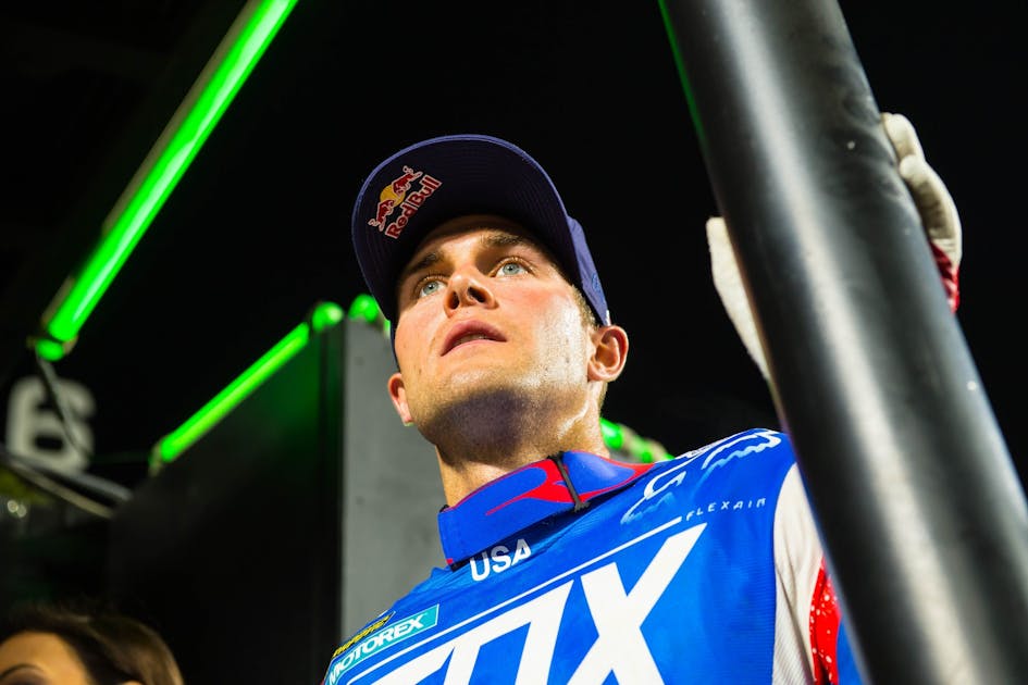 Yeah, Marvin [Musquin] was on the inside and where he was I was actually going to go, but I was like, man, I don’t want to pinch myself off. It kind of worked out good. Marvin rolled that inside but he had a lot of momentum and I came underneath him. Thankfully nobody was there and I could get under him. He kind of went wide and I kind of tucked under him and there was the line. So just to get that start was very critical tonight. The track was very long but also very tight and slow. It was very hard to get on the inside of somebody because the race pace was slower. Phoenix was easier to make a pass because it was faster, it was more broad, but this weekend not so much. It was very tight in the back. But long lap times and a long race, too. Cole [Seely] was behind me and he wasn’t letting off at all. So I really just tried to keep that intensity and keep that lap times in the low 58’s if I could, and just keep driving.