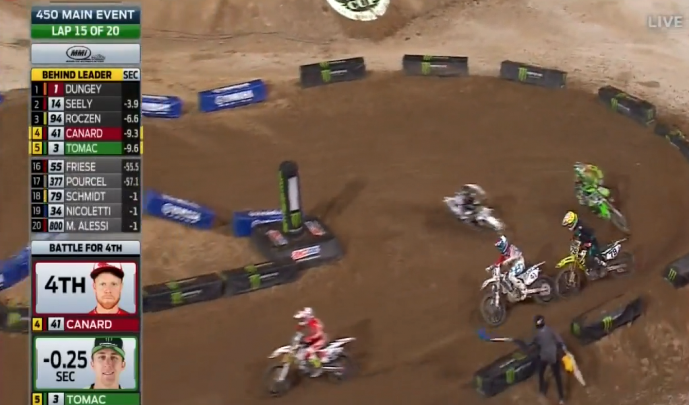 Jeez, what happened to the guy who nailed all three holeshots at the Monster Energy Cup? Maybe they just need to build every track with a drop down start like that one. Then everyone would be safe, including Anderson himself.