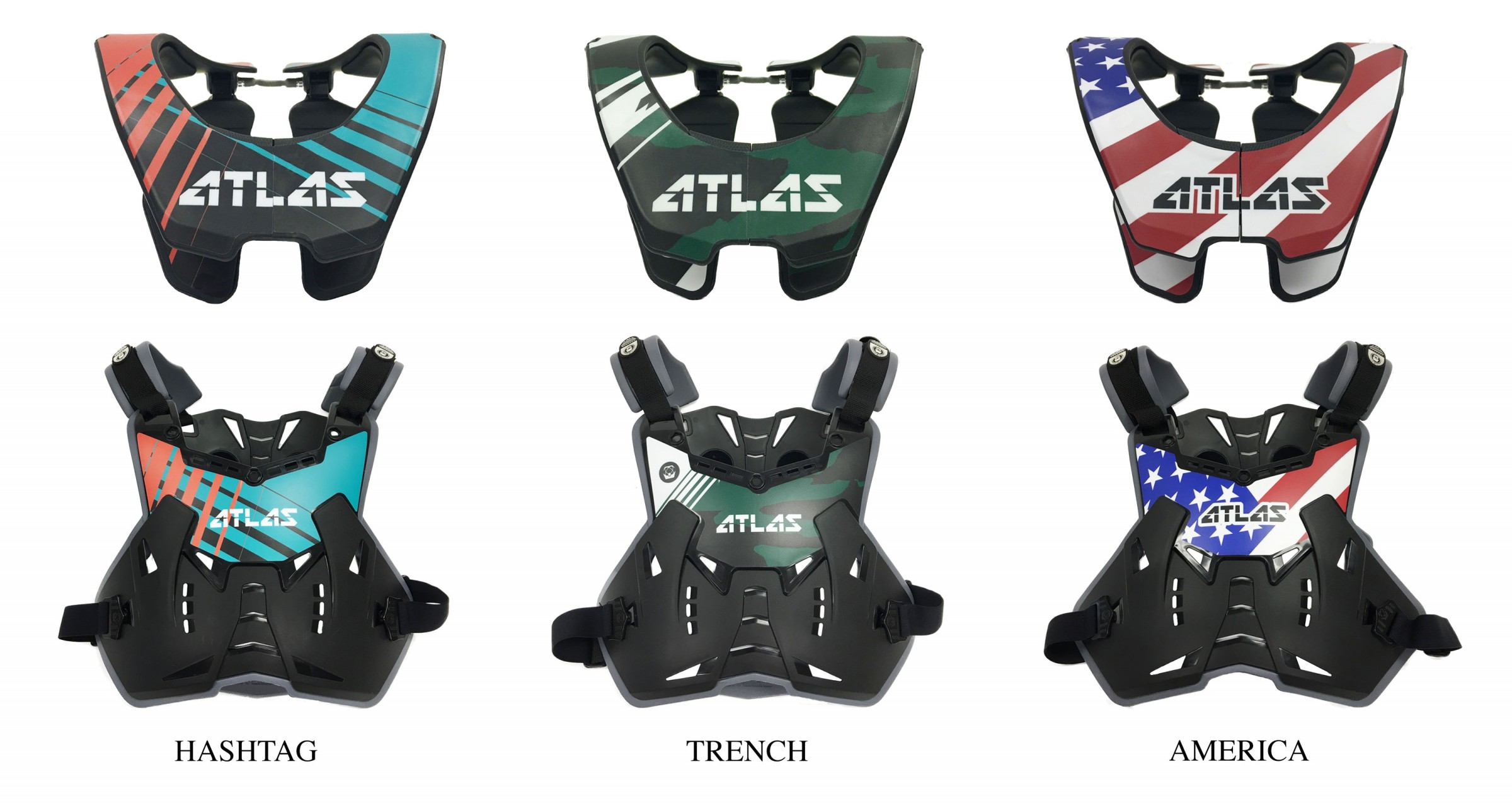 Atlas Brace Technologies has released three limited edition color ways for the Air Neck Brace, Defender, and Defender Lite Roost Protection. The Hashtag, Trench, and America are unique styles that will only be available for a limited time.