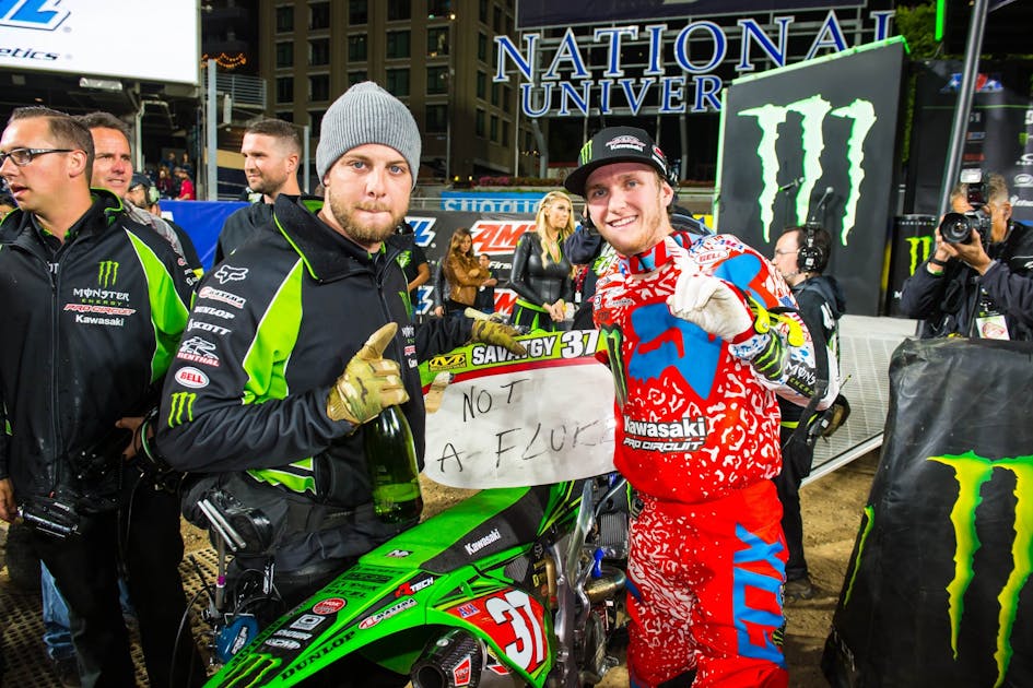 Ping: The most interesting battle out west right now is between Cooper Webb and Joey Savatgy. I don’t know many people who picked Savatgy over Webb prior to round one, or round three for that matter, but it’s something that needs to be looked at. Cooper destroyed these guys at the first few rounds. He was sharp, fit, and just plain faster than everybody else. But after a mechanical and a couple tip-overs, he’s let Savatgy back in the race. The Monster Energy/Pro Circuit rider was having a good night in Oakland and keeping Webb honest. I don’t believe he was going to make a pass on Webb, but he didn’t have to, because Cooper’s bike died, handing Savatgy his first win.