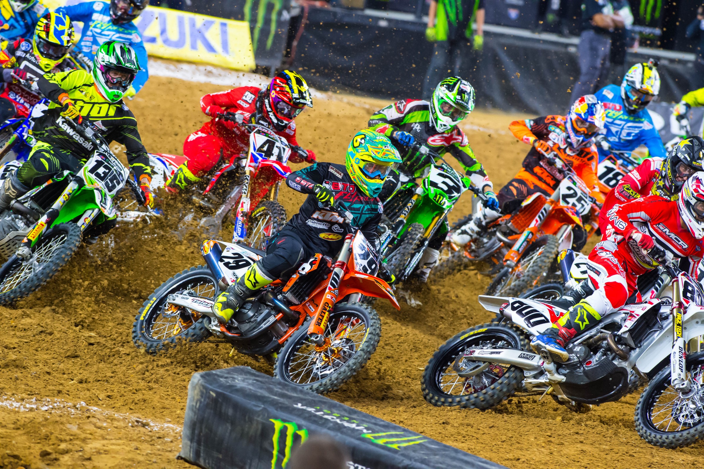 Jason Anderson: A heat race is a big deal for me because I’m not very good at them! I was in probably 80 percent of the semis last year. Sometimes you have heat races—and I don’t want to discredit any guys—that are lighter than others. Some heats you have Canard, Dungey, Seely… a whole bunch of people, just stacked. And then sometimes you don’t have those guys. And even when I didn’t have those guys I was still just jacked up or fall in a corner or get a bad start. So to be coming out of the heat races to the main is pretty cool for me. Tonight to get a good start and then a decently good start in the main was perfect, exactly what I needed.