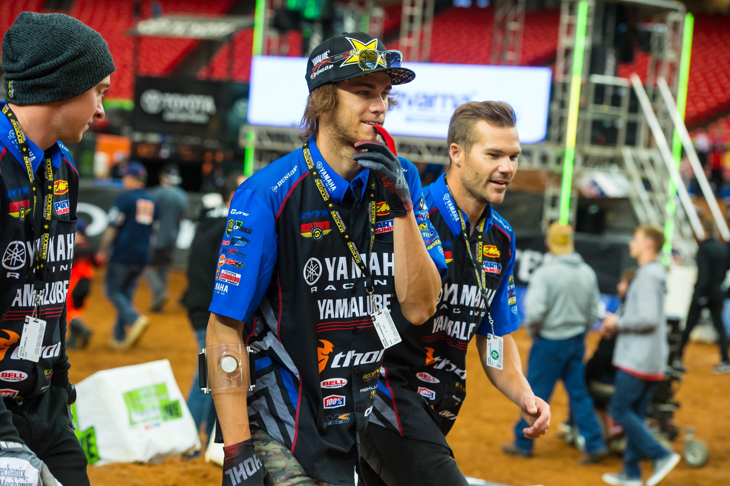 Yeah, pretty much from practice. I tried riding Thursday and it was hurting me bad, so I did starts. Then I showed up and got a shot with Asterisk and just kind of survival all day until the main event. I put fifteen laps in, so that was the goal. We showed decent speed but definitely not what we trained for and stuff. We want to win and that’s what we’re here for. We’ll get there, though. I’m not too bummed on the night considering everything going on. It’s a good starting point. Look forward to Daytona next weekend.