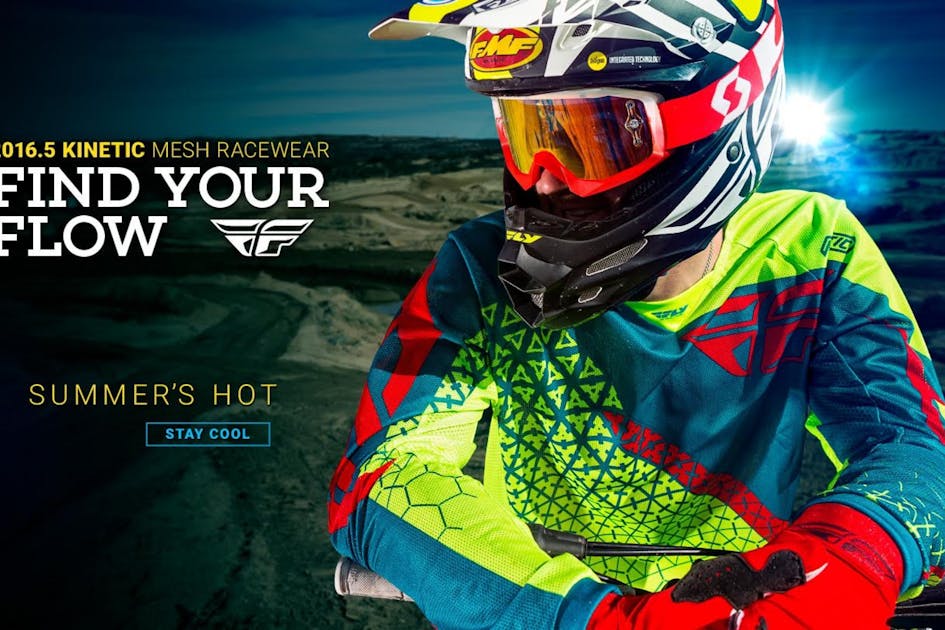FLY Racing has released its 2016.5 Kinetic Mesh Racewear in preparation for the coming summer race season. This fully ventilated mesh jersey and pant combo is designed to help you make the most of the great outdoors during the long hot days of summer, yet is still as durable as our standard Kinetic racewear. Look for FLY Racing pro riders as they debut the racewear during Daytona Bike Week at the Daytona Supercross, GNCC round one in Palatka, the Daytona ATV SX and more. Beat the heat and find your flow with FLY Racing’s Kinetic Mesh racewear. Available at FLY Racing dealers nationwide.