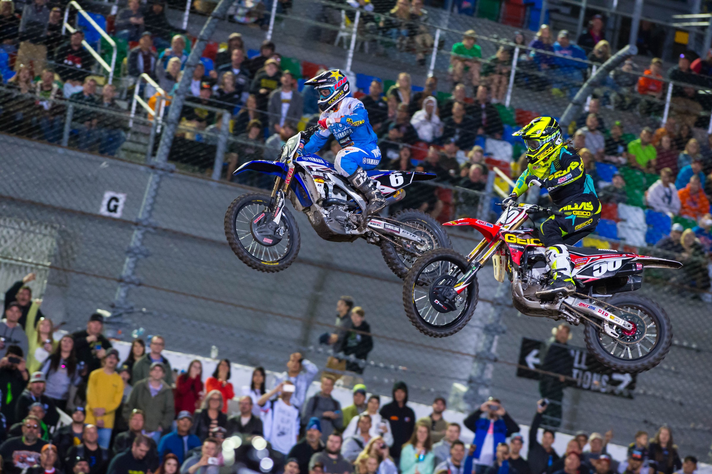 The 250 main event at the Daytona Supercross by Honda was amazing. Jeremy Martin, Justin Hill, Martin Davalos and Malcolm Stewart went at it hard all night, with Martin pulling through for the win on his Yamalube/Star Racing Yamaha. We found him in the pits after the race for a chat.