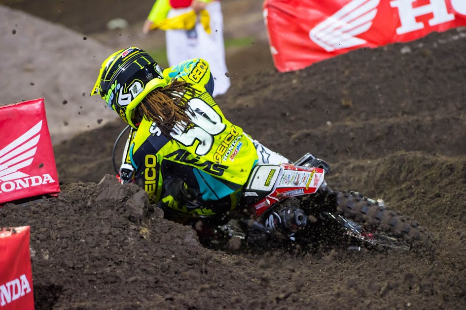 RJ Hampshire, who is making his way back from a serve head injury this off-season, was impressive in a heat race win in front of his hometown crowd. A bad start (which was a major point of emphasis on this track) and a mistake early in the main relegated him to seventh. “Was feeling great coming into the main, but I didn’t get a good start and then on lap three or four I cased a jump and blew my hand off the handlebars,” he said in a statement. “I was in survival mode from there, riding in a lot of pain, so I tightened up. Certainly not happy with seventh but looking to bounce back next weekend in Toronto.”