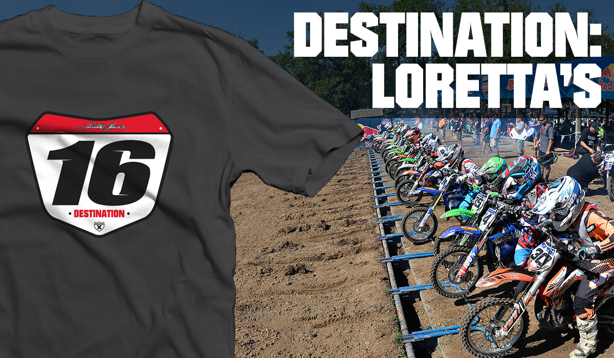 We're making some one-off, print-to-order Racer X shirts for all of the hard-working Loretta Lynn's hopefuls this year. Pack your Racer X Destination: Loretta's shirt in your gear bag and take off down the road to the 35th Annual Amateur National Motocross Championship at Loretta Lynn's. The Destination: Loretta's shirts are available for both adults and kids. Best of luck to everyone this year!