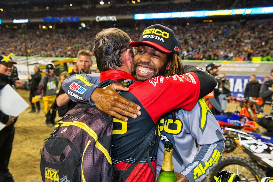 Well, that’s exactly what he did, winning on Saturday and even taking the points lead, in a wild 250SX East Region Championship. (Justin Hill crashed out of Detroit in practice and Jeremy Martin crashed in the first turn—and then again—to finish thirteenth.) Suddenly Malcolm, once known for being fast but also for bouts with inconsistency, is starting to look like the most solid pick in the series.