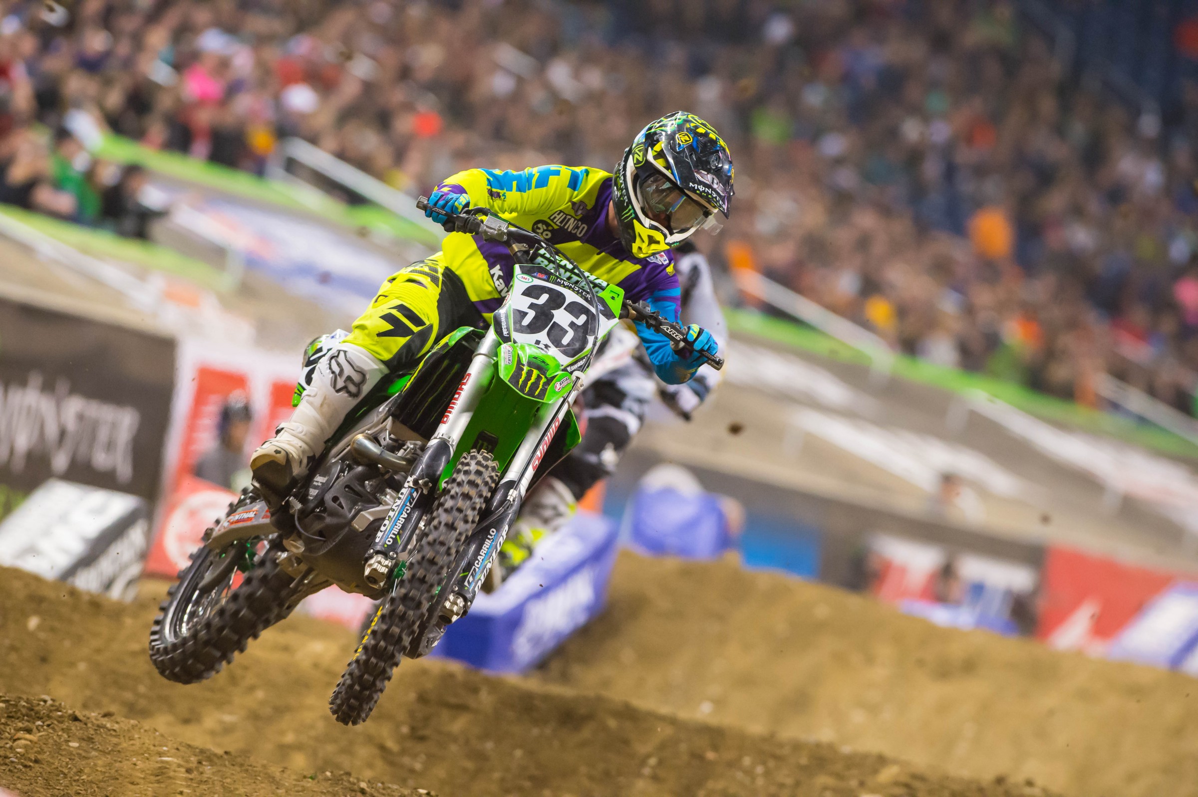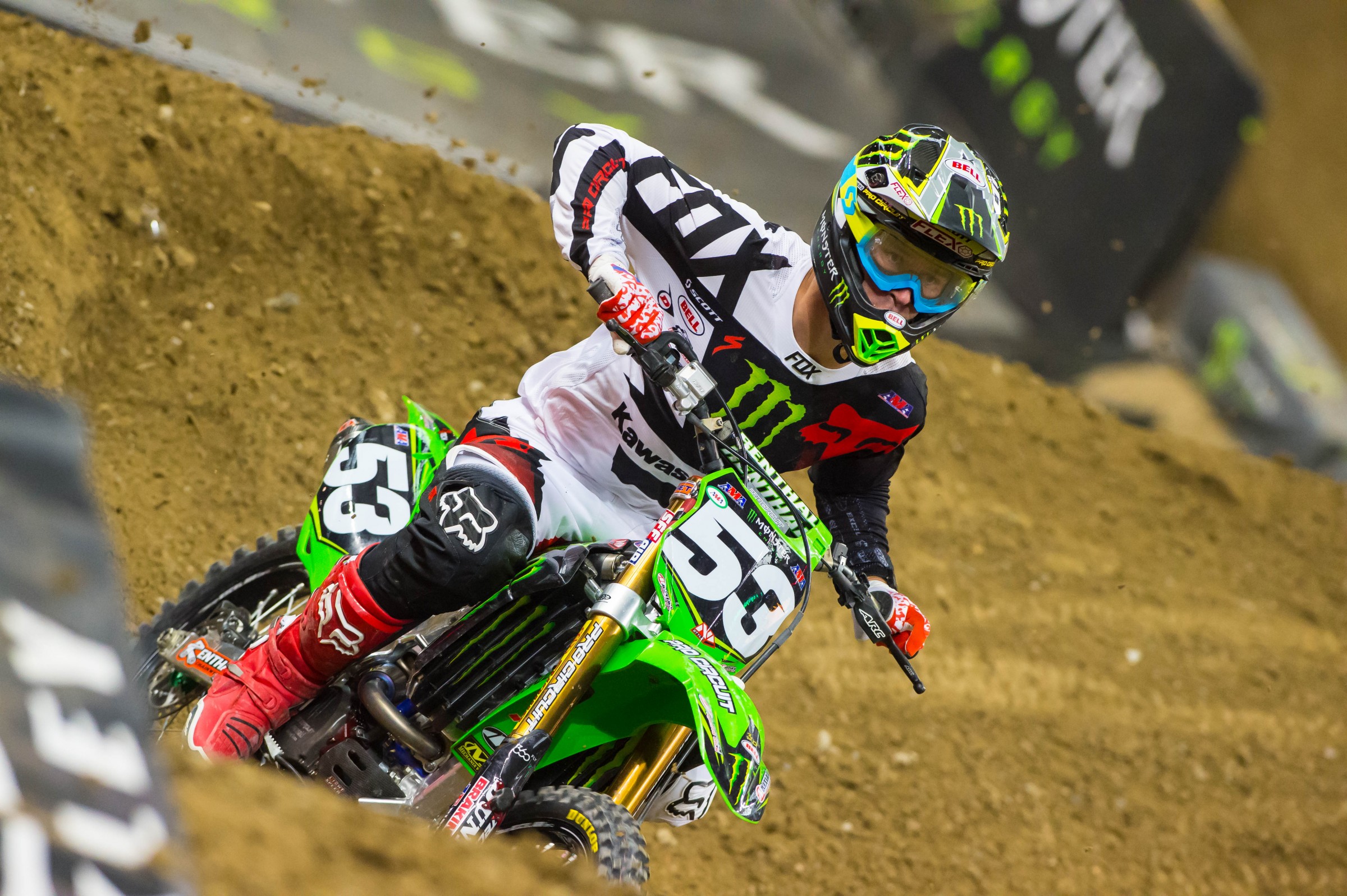 Just riding loose. I was riding way too tight and just putting too much pressure on it. I would get pretty crummy starts at Atlanta and Daytona and then I would just ride so hard and make passes and stuff, just push the edge. So I was riding tight and holding my breath. I just pushed too hard at the beginning and I’d pass up into like fifth or sixth, but then I didn’t have any energy by the time I got there. I was holding my breath the whole time and just forcing the issue too much. So the last two weekends I was like, just have fun. The points, I’m pretty far down on points. I did an 8-10 and then last weekend I was in sixth and then crashed on the last lap and ended up eleventh. So 8, 10, 11, I was pretty much out of the championship hopes. So I was like, let’s just start trying to click off some wins here. Start with a heat race and a realistic goal and we’ll go from there. Got the heat race wins and just started riding looser. As I said earlier too, my Monster Energy/Pro Circuit Kawasaki, I quit overthinking it and let the bike do the work. The thing’s been just running great and handling great. I quit overriding the bike.