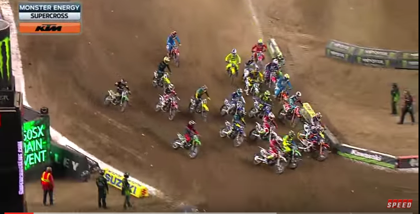 Here’s Dungey in about seventh, but moments later everyone will go wide and he will have the lead.