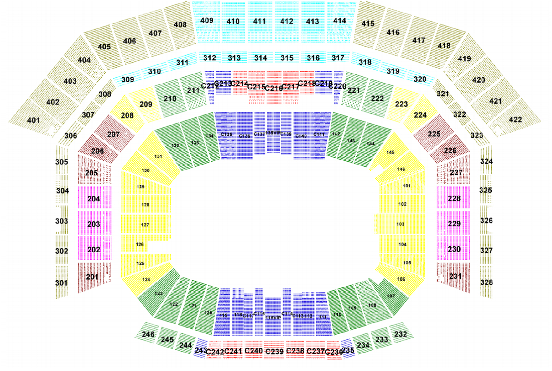 ***Please note that only the 100 and 200 level seats are available for sale. The link to the scaling map above includes the 300 and 400 levels as well, but these seats are not available for sale.