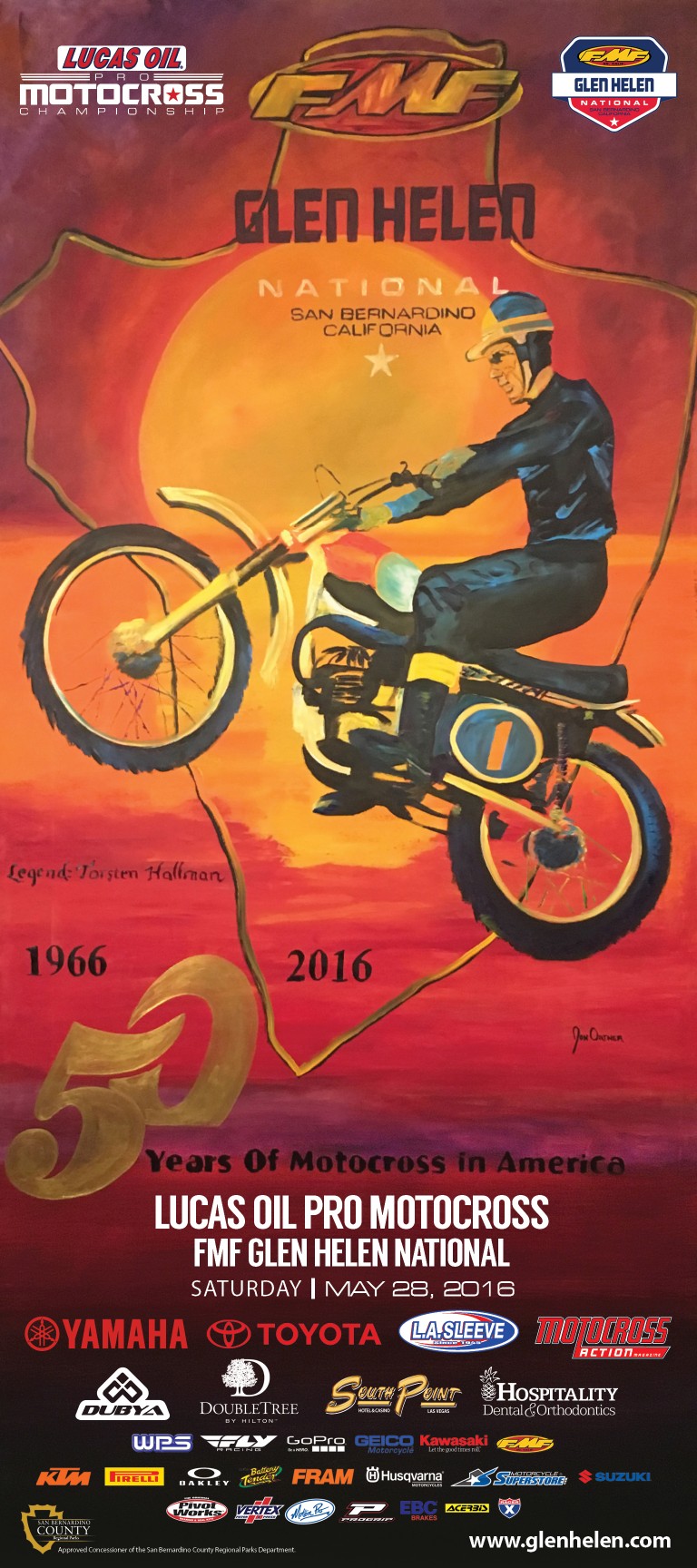 Get a poster for $5 at the track on race day. Torsten Hallman, along with other great motocross legends, will be available to autograph these commemorative posters at the Glen Helen Museum between 11:30 am - 12:30 pm during the National.