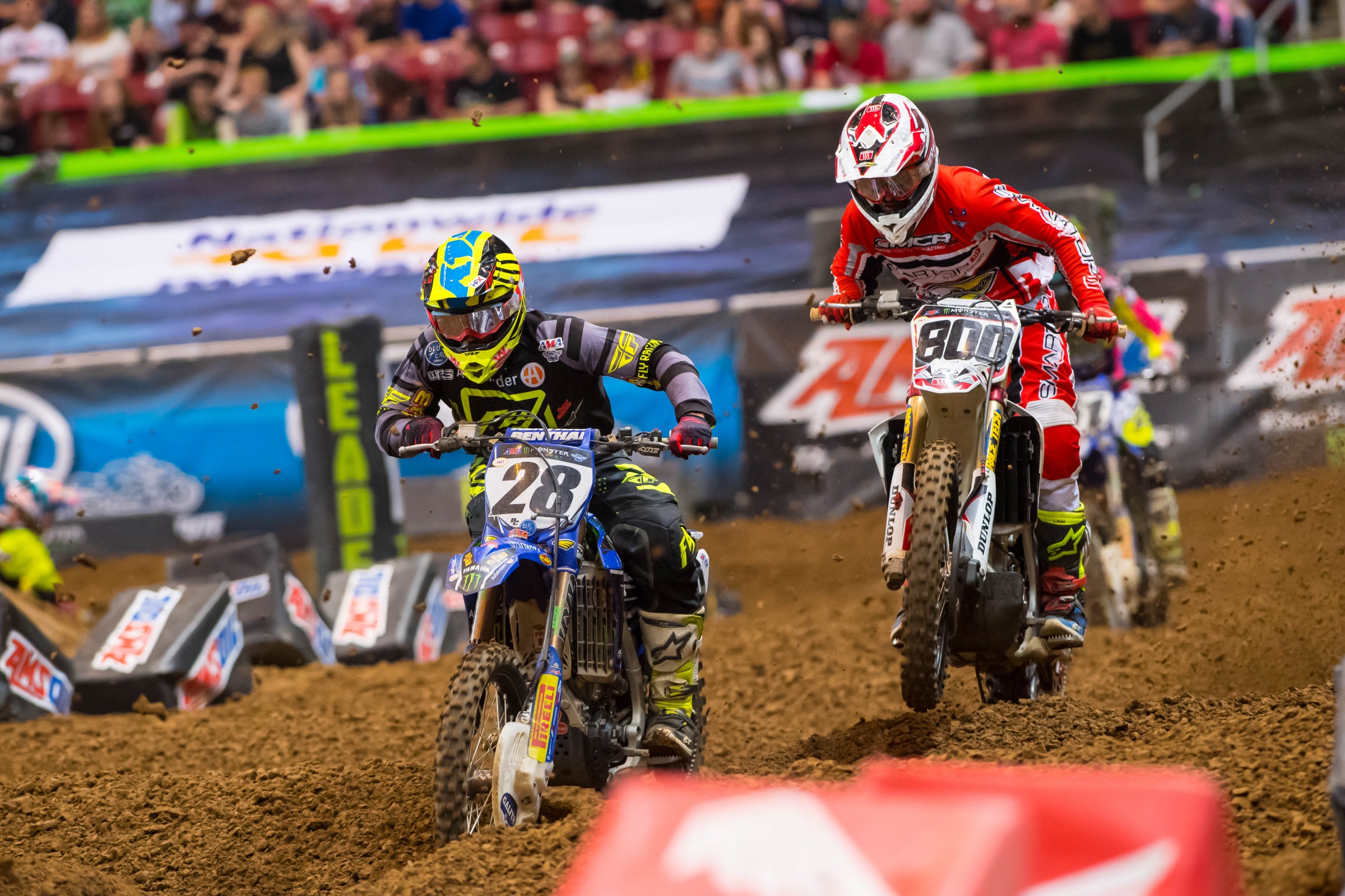 It was a crazy start, just about ran over Martin Davalos. Then came into the sand section and got by Mookie [Malcolm Stewart] because he stalled his bike and I think like five other people went down by him. I got into fifth, made a few passes and got up to Shane [McElrath] in second. It was a great battle, and once I got him I put my head down and charged. Jeremy [Martin] was pretty checked out by then so I played it safe and stayed in second. Now I’m one point behind in the championship.
