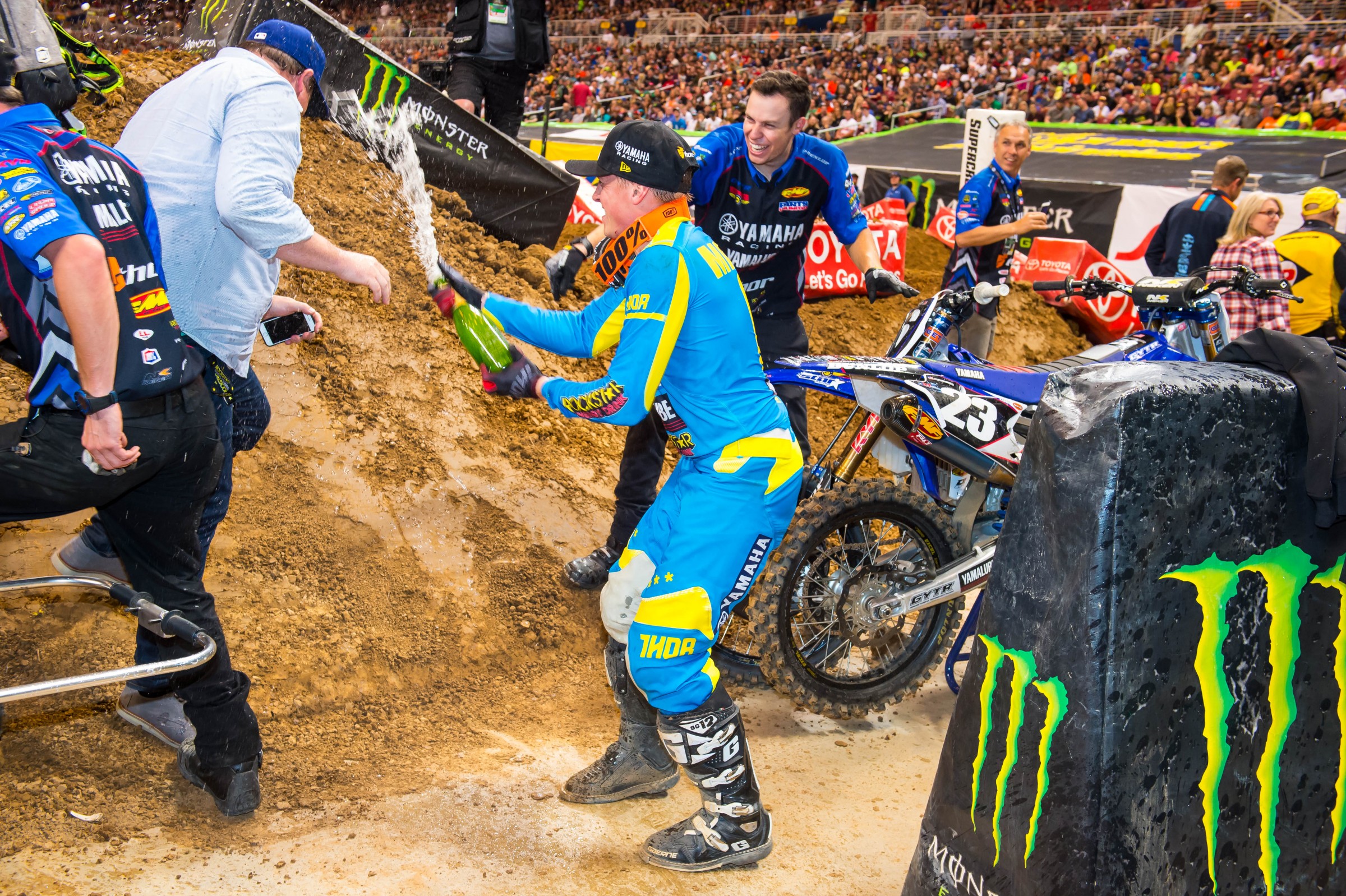 Matthes: I think he does but he mentioned to me after his win that he's a long shot. First of all it's 16 points and that ain't much. Second of all it's the wacky 250SX East Region and as we've seen, anything can happen including the points leader missing a race for visa issues. And don't forget, Vegas is a combined East/West final where shit can get even crazier. Yeah, Jeremy Martin has a shot and don't you ever forget it. I feel like his team and Johnny O are just telling him he's out of it so he doesn't crack under pressure.