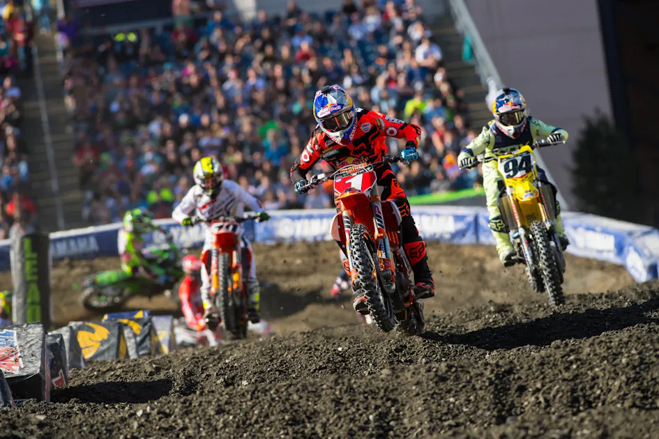 Jason Weigandt: An informal fan poll indicates that 99.9 percent of people hate this idea. Whatever, I’m all for it! I will say right off the bat that a playoff-style format (or “chase format”, which seems to be the operative term, borrowing from NASCAR, which started this concept in motorsports) is not as fair as counting every race the same. There is no more fair way than saying all 17 races count equally. But you know what? We’re not curing cancer here. If we were curing cancer, I’d say count all the research and data to find the best possible answer for, “What’s the world’s best cure?” But here, we’re just crowning the world’s best supercross rider. I’m willing to trade a little bit of fair to get a little more excitement. Plus, we’re never really “fairly” settling the championship anyway. Supercross is a mix of bikes and people, and injuries, so you can end most seasons with plenty of what-ifs even in the current, most fair format. Like, “What if Ken Roczen had tried these stock triple clamps back in December?” That’s the heart of bench racing and we do it every day of our lives.