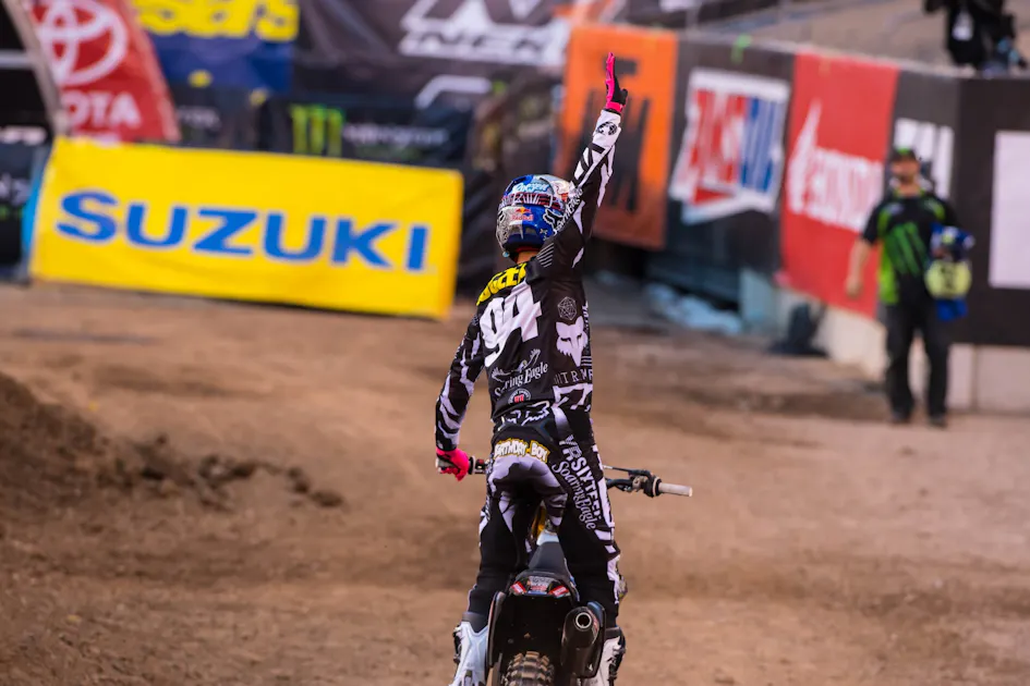 13 20 Broc Tickle Holly, MI Suzuki RM-Z450- Tickle was jumping this tricky 3-3 rhythm early on and looked great in practice. The best we’ve seen him since his comeback from injury. I spoke with him in the truck and he indicated that it was going to be a good night as he was feeling it. And he got a good start and looked fast early, but not sure what happened after that.