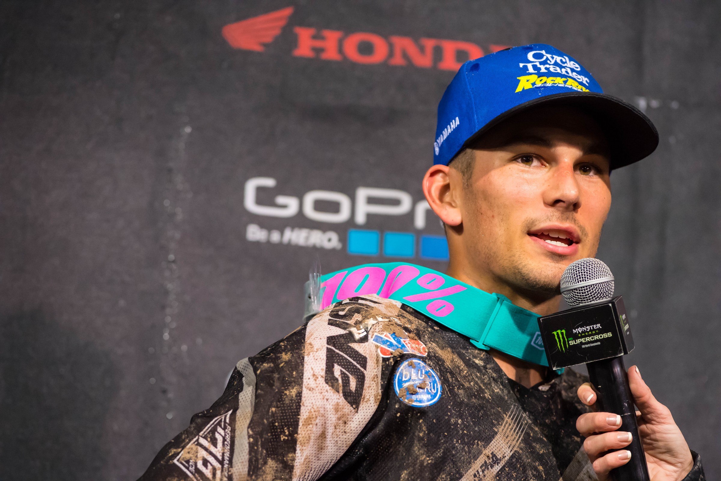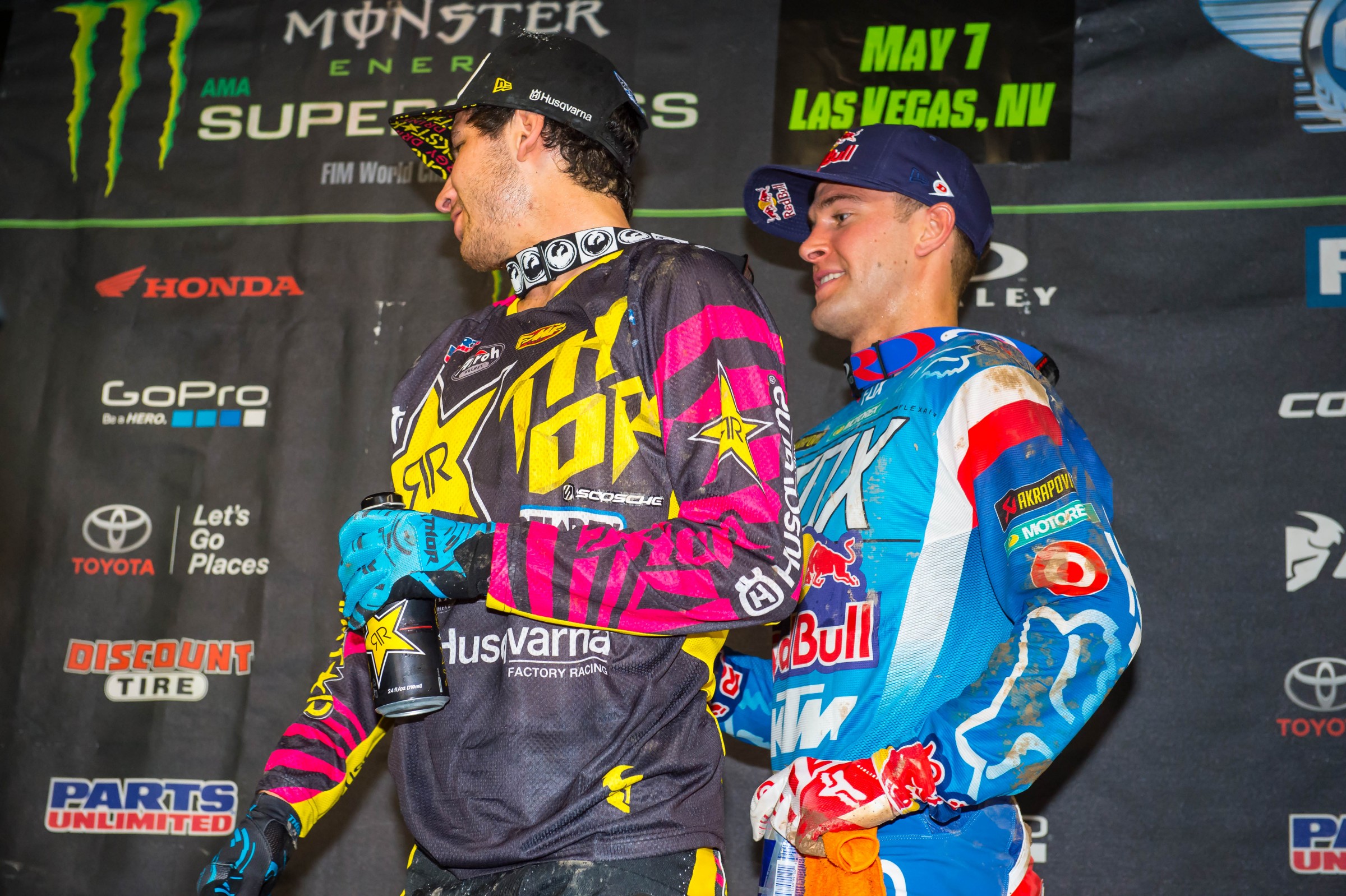 I felt good. That track was all about the start. Once I got out there I got passed by Kenny [Roczen]. We didn’t do a hot lap so I was kind of nervous about what the lines were out there. I kind of just took the first few laps and I just kind of wanted to survive to be honest. I was like, make it out of Vegas. We’ve got an outdoor season. But to do it how I did, I felt like I was catching Ryan [Dungey] a little bit there for a minute but it is easy to lose time and easy to make up time. It was very squirrelly out there but we made due.
