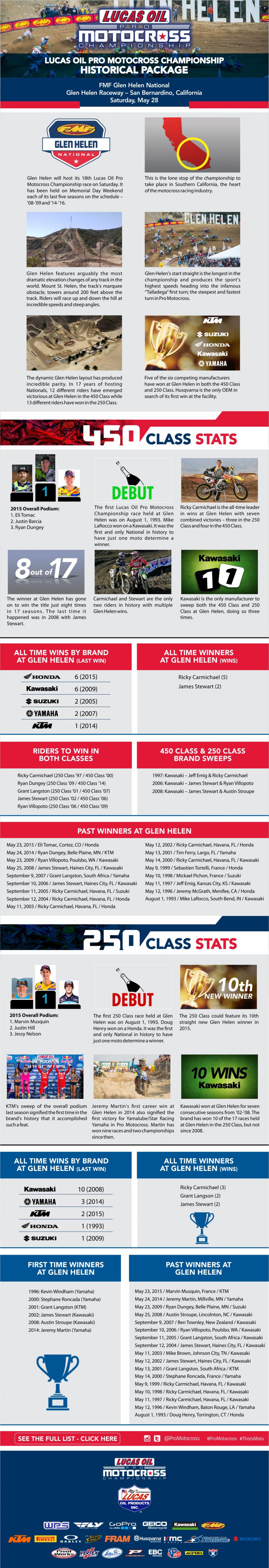 Ahead of the second round of the 2016 Lucas Oil Pro Motocross Championship at Glen Helen, this Saturday, May 28, MX Sports has released the second historical notes package of the year.