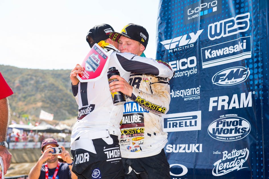 Jeremy: Well, we haven’t really been in that situation yet. Obviously now it is a little bit different. But I think at the end of the day we’re family. We all take racing seriously and what happens on the track happens on the track. But when we leave we’re family. I think that’s the most important thing. I’m damn proud of how Alex did today. I won the second moto, he got the overall and he’s the red plate leader, so that’s pretty exciting. Hopefully mom and dad are proud and they’re itching to probably talk to us once our phones get service.