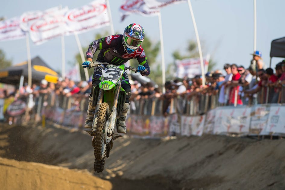 The day went pretty well, ended up 5-10. I had a little spill in the second moto, but the first moto was pretty good. Got a pretty good start, made some passes early into third and [Jason] Anderson and [Eli] Tomac got by me. But I feel like I was riding pretty good. Definitely some improvements from last weekend, especially going into the second moto. It’s definitely hard; you never really get to test in these kinds of conditions at the test track. Made some changes to the engine, made some changes to suspension, and I think both were positive. Good day, and definitely taking some positives from it.