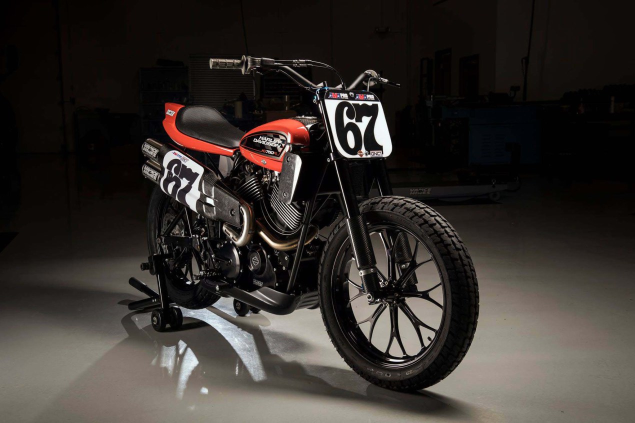 For the first time in 44 years (!!!) Harley-Davidson is rolling out a new flat track machine. Based off the Harley-Davidson Street 750, the XG750R liquid-cooled, fuel-injected bike has been handled by Vance & Hines and made its debut at last weekend’s Springfield Mile. A prototype of the bike was raced by Davis Fisher at the inaugural Harley-Davidson Lone Star Mile at Circuit of the Americas back in April. He also raced the machine in the last two AMA events at Phoenix and Sacramento. The bike is currently for race-use only. Cycle World has more: