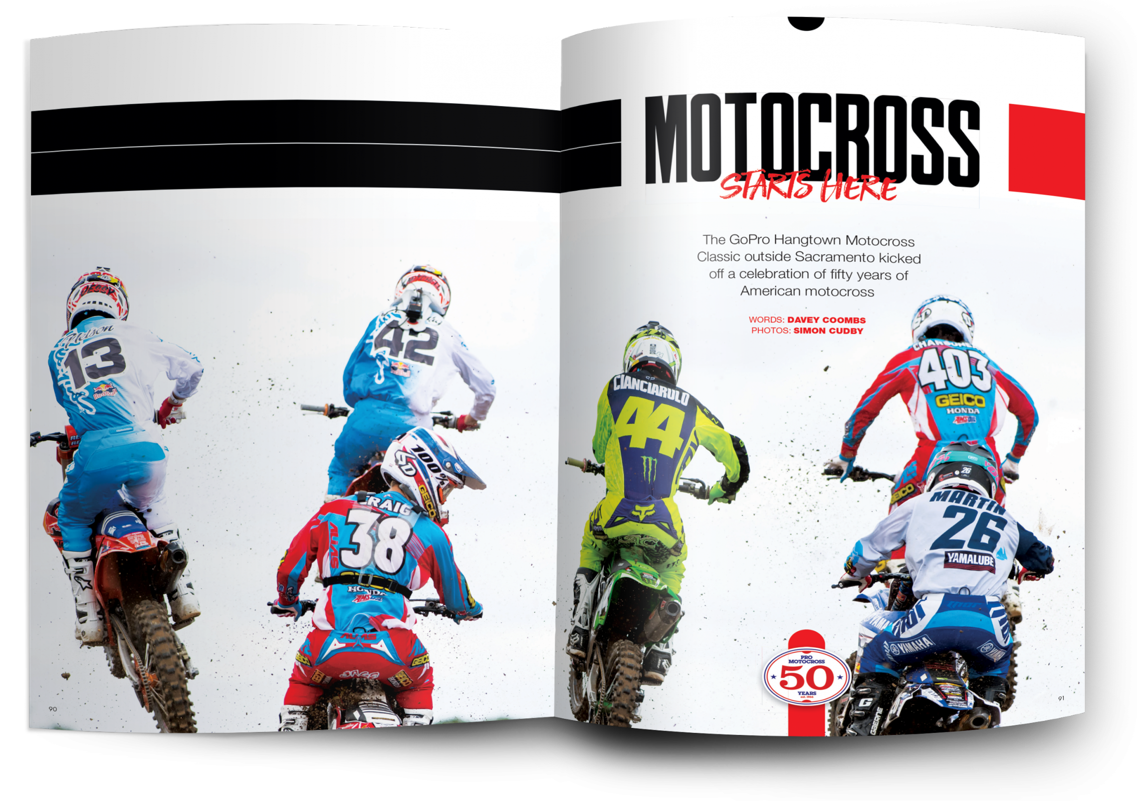 MOTOCROSS STARTS HERE: We’re celebrating fifty years of American motocross, and it all kicked off at the GoPro Hangtown Motocross Classic outside Sacramento. Page 90.