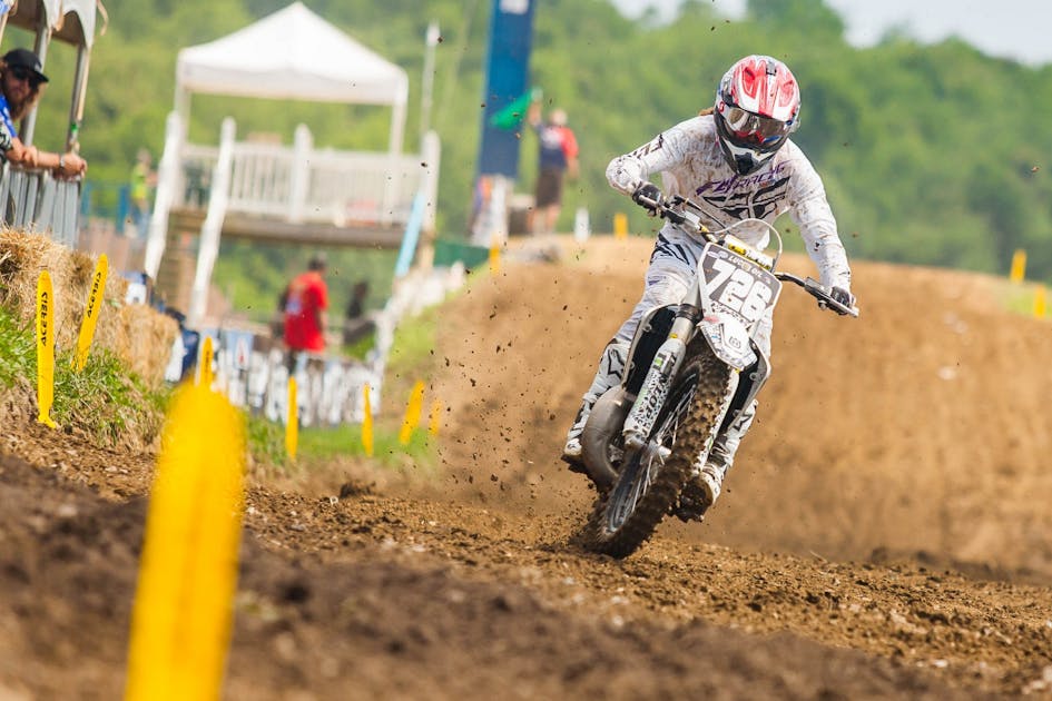 “It’s a perfect 125 track here at High Point. The bike’s running great, my mechanic Eric, he’s got her tuned up real good,” he told us after the race. “They [four-strokes] don’t pull me too hard. It’s not too deep of a track. The ruts actually flow really good, and it’s a good rough. It’s not rough where you can’t ride it. It’s rough where it’s basically a man’s track rough, and it just takes good skill and good bike control to ride it.
