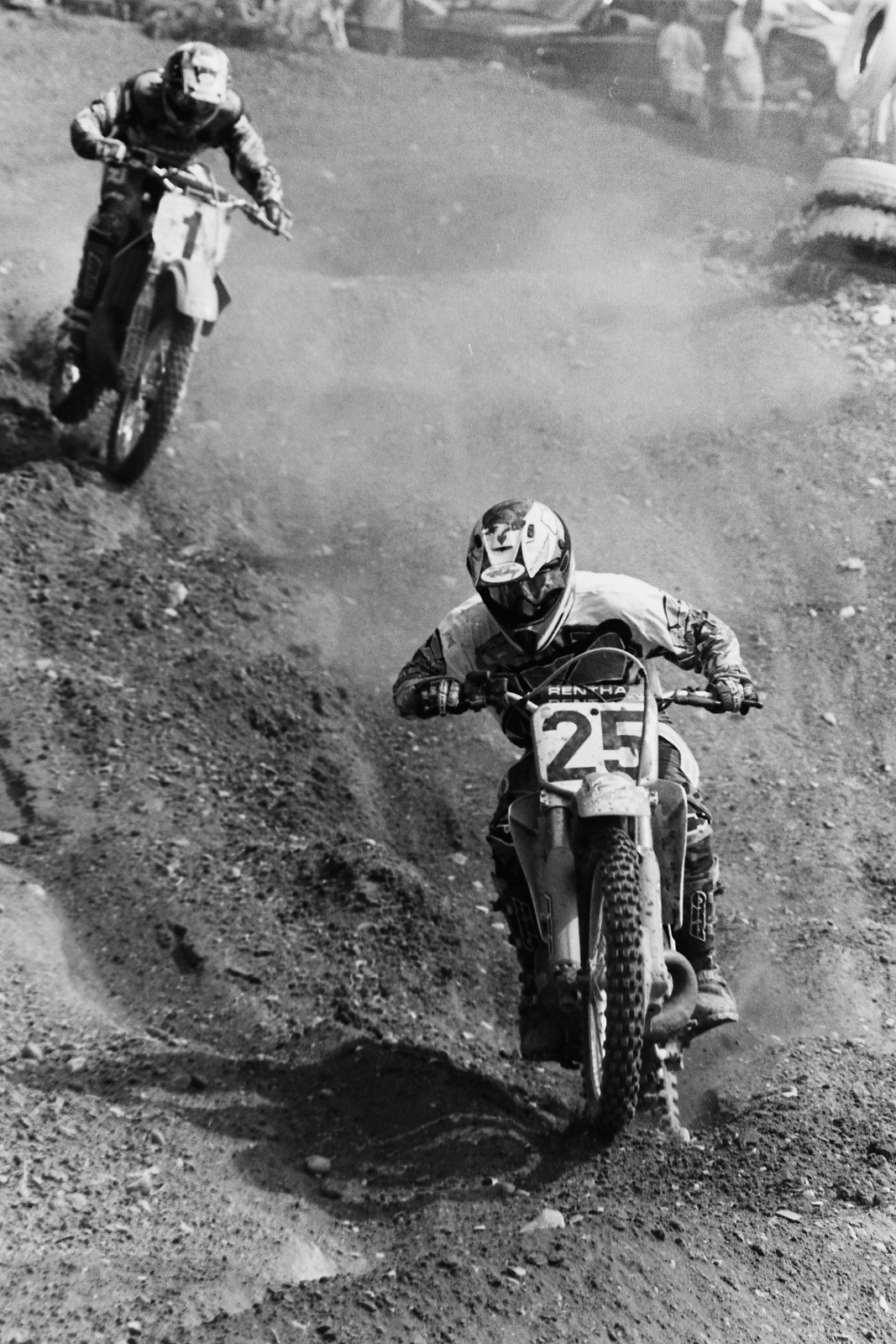 Mike Kiedrowski leads Greg Albertyn in one of the old RedBud rhythm sections.