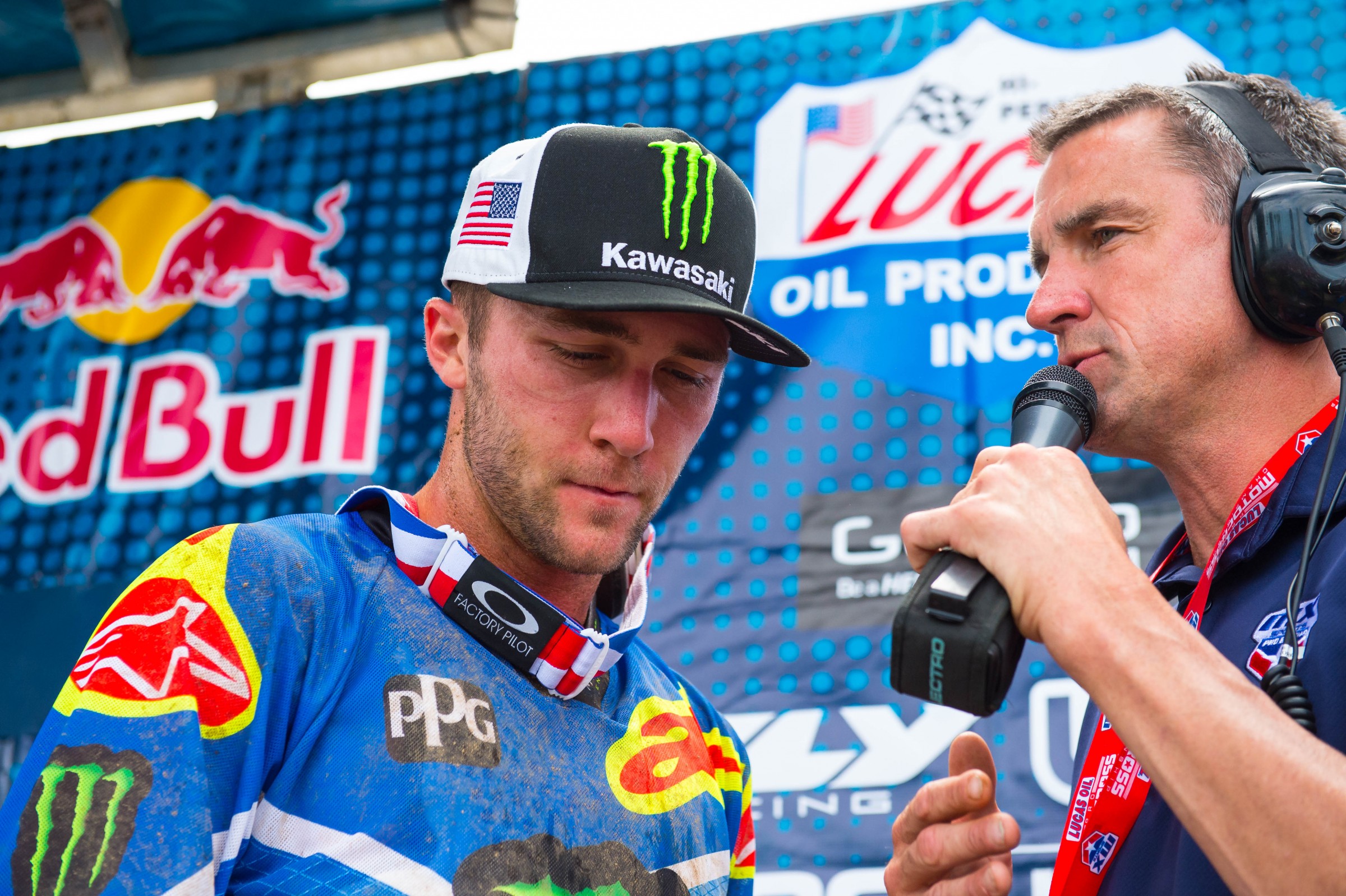 Yeah, it was huge. Frustrated still that I went 3-3 instead of 3-1. Leading the whole thing and gave up five points there with like three laps left. That was frustrating. I basically lost close to 40 points or more in two weekends with the DNF at High Point and then first moto tip over at Muddy Creek. So I’m really searching for points right now. Obviously Cooper’s kind of hitting his stride in the series. He came in, he’d been injured and didn’t have the seat time but like we saw with him and Joey crashes happen and you can lose a lot of points in one moto. Just got to keep the optimism up and keep my momentum going and just search for points every moto.