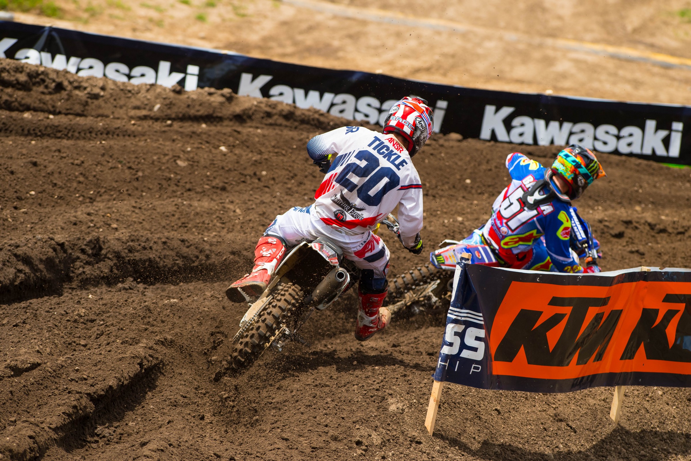 Broc Tickle: Yeah, for sure. I have a lot of family who come out. Obviously it’s July Fourth weekend and I feel like it’s the best venue on the circuit. Good vibes coming in. Just stoked to back it up from last weekend. I obviously wanted to keep it going. You can’t really force it to do it. I just let it happen. Today, I got decent starts—by no means not a holeshot. But last weekend definitely gave me some confidence because I made a lot of moves early on in both motos and got to where I needed to be. First moto I actually felt like I should have done better. I caught up to both Eli and Barcia and just settled in. I actually was going faster than both of them. So I was frustrated with myself and wanted to be better the second moto. Obviously I wanted to be on the podium. So there at the end of the second moto Barcia was coming and it was everything I had to keep him at that distance. All I thought about was getting back on the podium and I wanted it. There at the end I laid down a couple good laps and I saw him back off. So I knew I had it with two laps to go. The track was really rough today. It was tough.