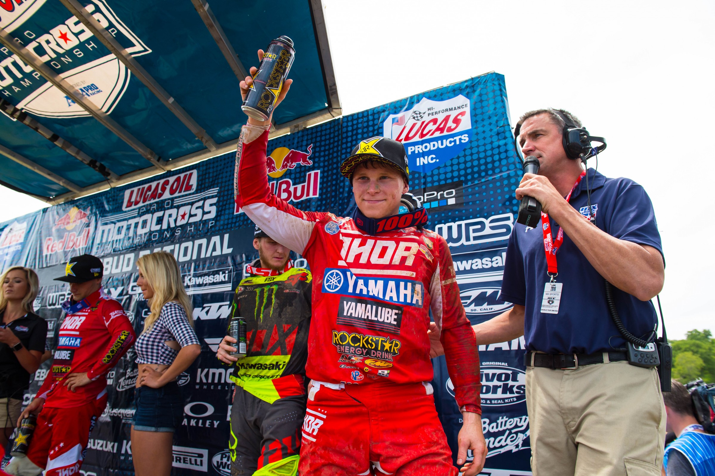 Honestly I think going into Hangtown we were on the same motor setup, same chassis stuff, other than suspension. I felt comfortable going into Hangtown. To be honest, I wasn’t ready. I came back from supercross to get on the gate and be prepared, but I think it actually set me back. I didn’t do enough motos honestly on the bike before Hangtown and honestly I wasn’t in riding shape and I couldn’t put two motos together. So for me, it was important to get to the races and almost use that as my training. I came back and I thought supercross would help me for Hangtown but it didn’t. Now it’s paying off. But I’m just stoked on where I’m at. It’s surreal to me right now. I just want to keep it going. It’s nice to be on the podium and to be up front.