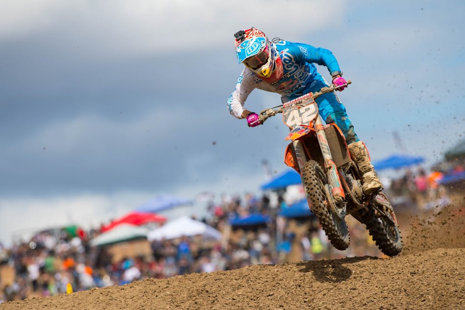 In its first year as KTM’s sole factory 250 effort, the Troy Lee Designs/Red Bull KTM team came into the season with a five-rider effort. Following Shane McElrath’s huge crash on the final lap at The Wick 338, the team is now down to just one healthy rider: Mitchell Oldenburg. Luckily, “Freckle” has made massive strides and is finding another level just when his team needs it. In the super deep, super competitive 250 class, he’s gone 7-7-8-12-8-9-6 over the last seven motos and looked to have another top ten until a crash in Southwick’s second moto led to a 29th. What’s been the secret behind his huge improvements? He told us all about it at Southwick.