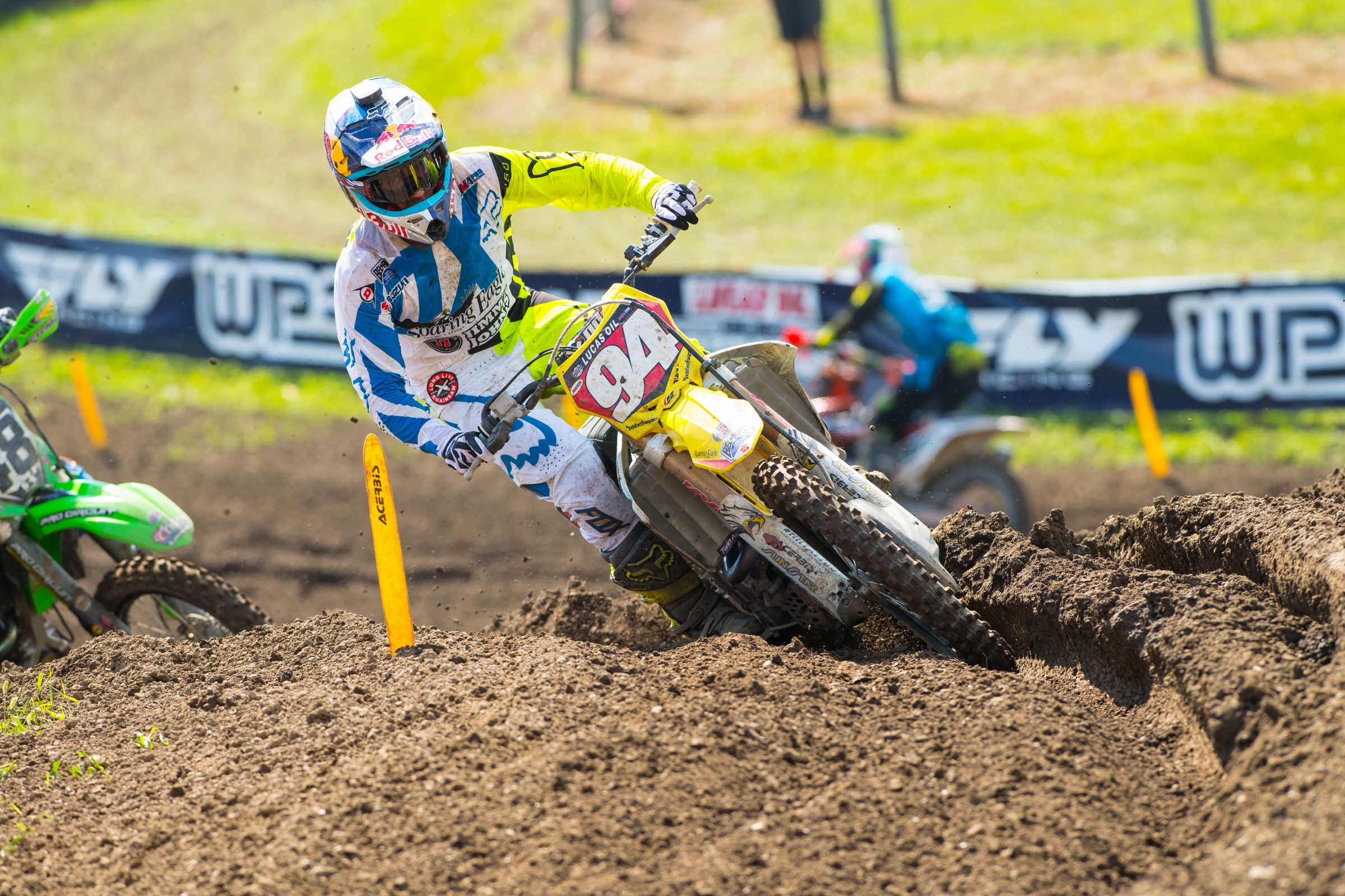 Racer X: Good job today. You got a lot of passing points. Second moto you were up there and fell late. So not a good day. Fell in the first moto restart. You were second in the first start? What were you before the first red flag?
