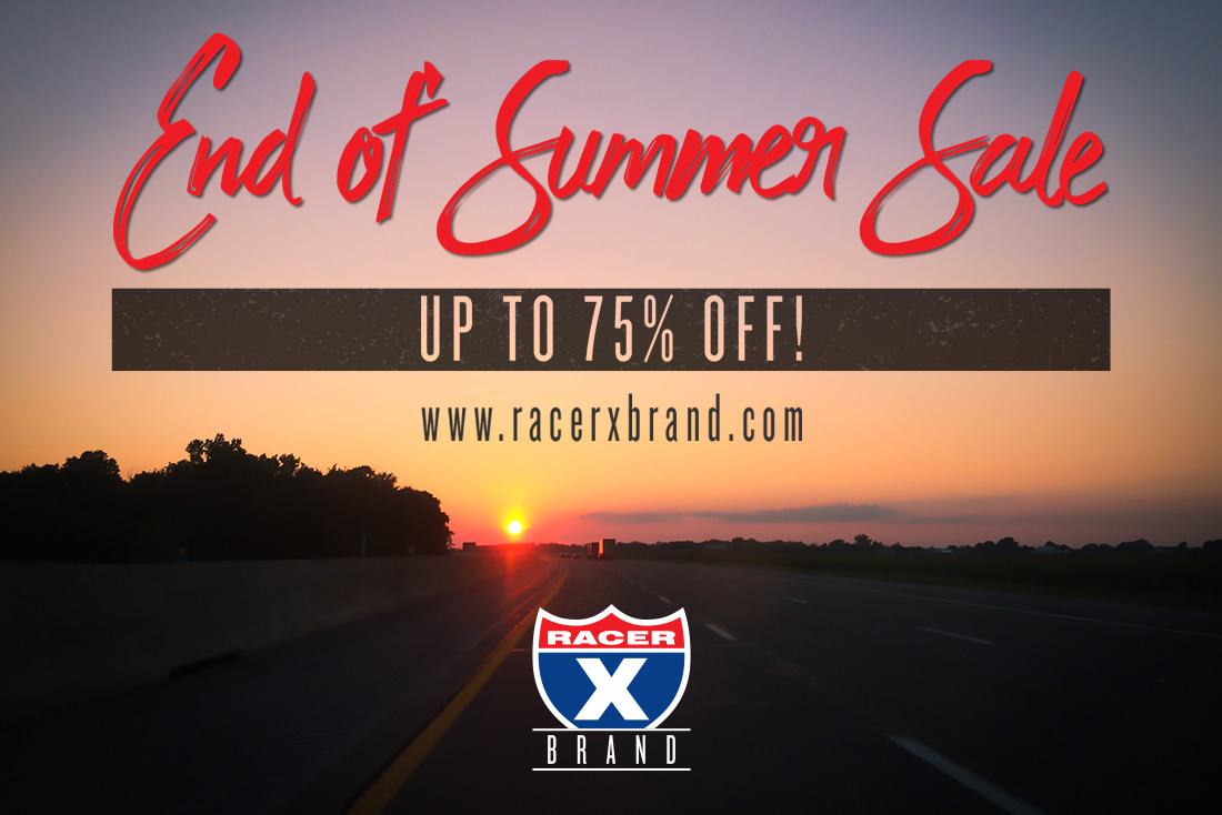 Didn’t have a chance to stop by our booth at one of the Lucas Oil Pro Motocross races this summer? Visit racerxbrand.com when you're at work recouping from Labor Day weekend to see what you missed. Our End of Summer Sale starts this coming Tuesday and you can pick up some cool merch for next to nothing.