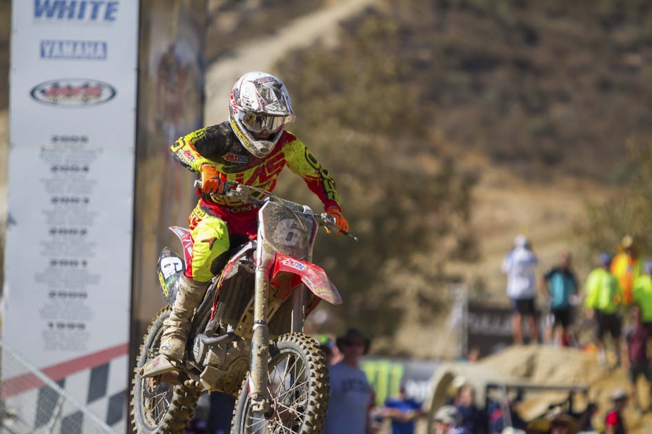 Austin Forkner: It started out pretty good. I was second gate pick from yesterday. First moto I got a pretty good start. Kind of got shuffled back a little bit on the first couple turns, but ended up just having a pretty solid ride and got a third in that moto. Then in the second moto I got… it was an okay start. I think I spun a little bit out of the gate. Kind of got together with some guys right off, and then on the first downhill me and [Jeffrey] Herlings were side-by-side and I was trying to brake. They watered it so much that my wheels were locked up going down the hill. I couldn’t brake any harder. I smacked Herlings in the bottom and I slammed into the outside of the berm and fell. Then got up and was the last one going by far. Caught up, I think I was in tenth. I needed I think eighth to get podium overall. I was in tenth and kind of catching ninth. Over on the big, fast, uphill step-up in the back landed off that. You kind of go over a little roller into the turn and the roller had some ruts in it and some bumps and it was pretty slick from the water. There was like water standing in the bumps. Kind of hit and slid and kind of swapped off the bumps and then caught, and just got pitched and landed really hard on my lower back and my butt. Kind of knocked the wind out of me. I couldn’t even move at first because it was like a really gnarly crash, but like in your butt and my lower back. I couldn’t move hardly at first and I crawled off the track and was just trying to make sure nothing was broken or hurt really bad. Then I was just kind of laying there. The bike was messed up from the first crash and I’m pretty sure after that crash it was really messed up. The medical people got there and they were telling me not to move and stuff, and at that time I think I could have got back on and ridden but I was already so far back at that point. That was my second crash, and I kind of hit my head just a little bit, I think. I was like, whatever. I was just kind of over it at that point. I was still hurt. At that point I didn’t know if it was just like a stinger or if something was actually messed up. I’m pretty sure it’s just a stinger, but I did smack my head pretty hard. The only race all season I didn’t finish. It bums me out that it had to be my last one. I was feeling pretty good and all I had to do was catch the guy in front of me. Then it ended up while I was getting hauled off the guy that was in eighth actually got together with another guy and they fell right there. So if I could have got the guy in front of me and passed eighth whenever he was down, would have been podium, but whatever.