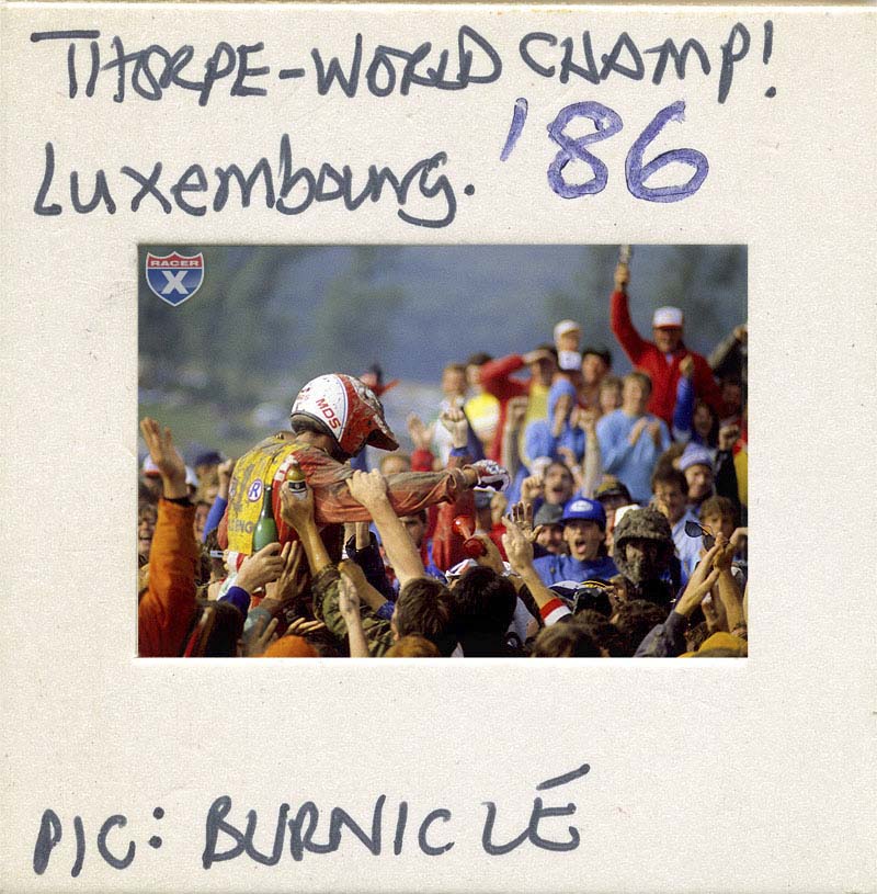 In Italy, it was pleasant from the time we first got there. No animosity. But I did notice that in 1982, 1983, 1984, 1985. [Laughs] You could just sense that [animosity]. But in ’86, I don’t know if they were maybe just in submission, like, “These guys are on fire” or whatever it was, but everyone was pleasant. Remember in 1986, that was our first year on production bikes and they had works bikes in Europe, and that was a very European style of track. Now, I remember personally loving that track so much that I didn’t want to stop riding it, but I still thought they might have an edge. But we drew gate pick number one, so we got good starts, and that made it easier. It also seemed like the pits were more separated. They would usually move us to an area before the start where all the riders have to stare at each other. In Italy we didn’t see each other much, so maybe that helped. And from the fans, they didn’t have as many air horns as you hear today, but I just remember hearing giant cheers. The crowd was so huge, and I remember Rick, Johnny and I having to get on top of a van just so we could kind of clear out some space to sign autographs. And the van started rocking! Not because the fans were angry, but just because they were pumped!