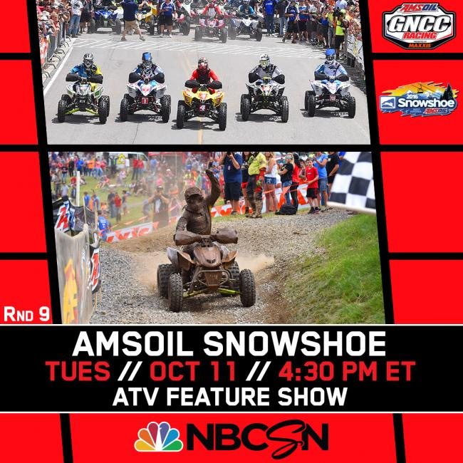 Don't miss the GNCC ATV feature show on NBCSN today at 4:30 p.m. EST from Snowshoe, Round 9 of the 2016 AMSOIL Grand National Cross Country Series presented by Maxxis.