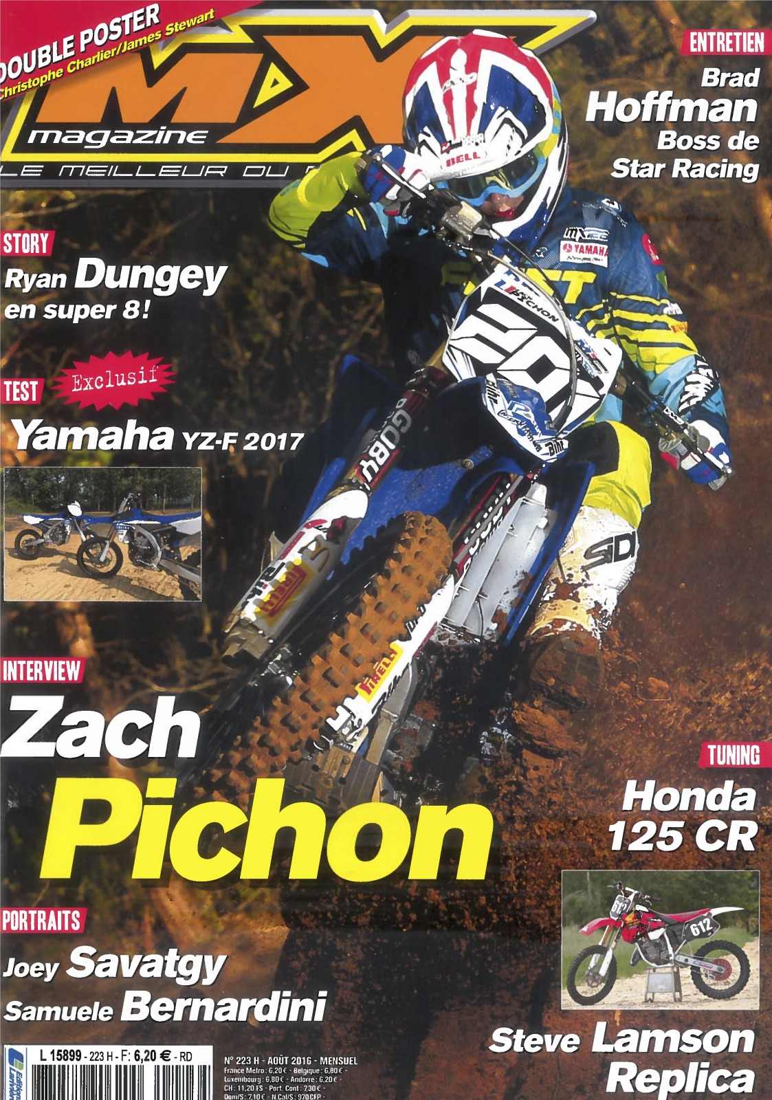 Check out the son of two-time AMA East Region Supercross Champion (1995 and ’96) and two-time FIM Motocross World Champion (2001 and ’02) Mickael Pichon on the cover of MX Magazine. Zach will race the EMX250 Championship in 2017 with Suzuki.