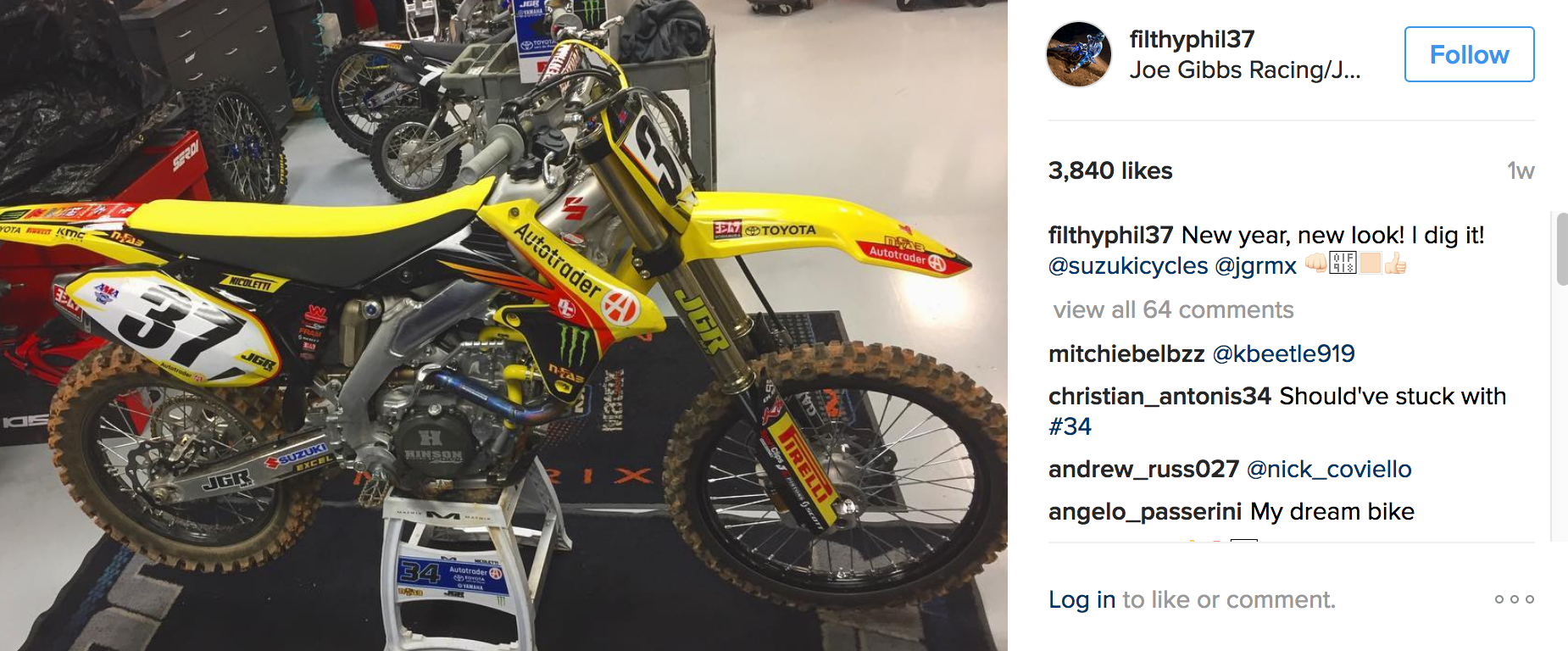 JGR made a play for Webb, but sources tell me that Yamaha factory pushed the salary way over what JGR could afford with them also paying Justin Barcia big bucks. Anyway, the team is yellow now, and along with 450 help, they got two 250F rides from Suzuki also. It was like a two-for-one deal. Yoshimura will provide the motors for the two 250 riders, and in talking to J-Bone, he said one 250 rider from SX will stay to ride MX for the team. I’d bet on current rider Phil Nicoletti being one of the 250 riders, and I’d say the second one will be Matt Bisceglia. So Nicoletti will go to the 450 for MX while Matt stays down in 250s.
