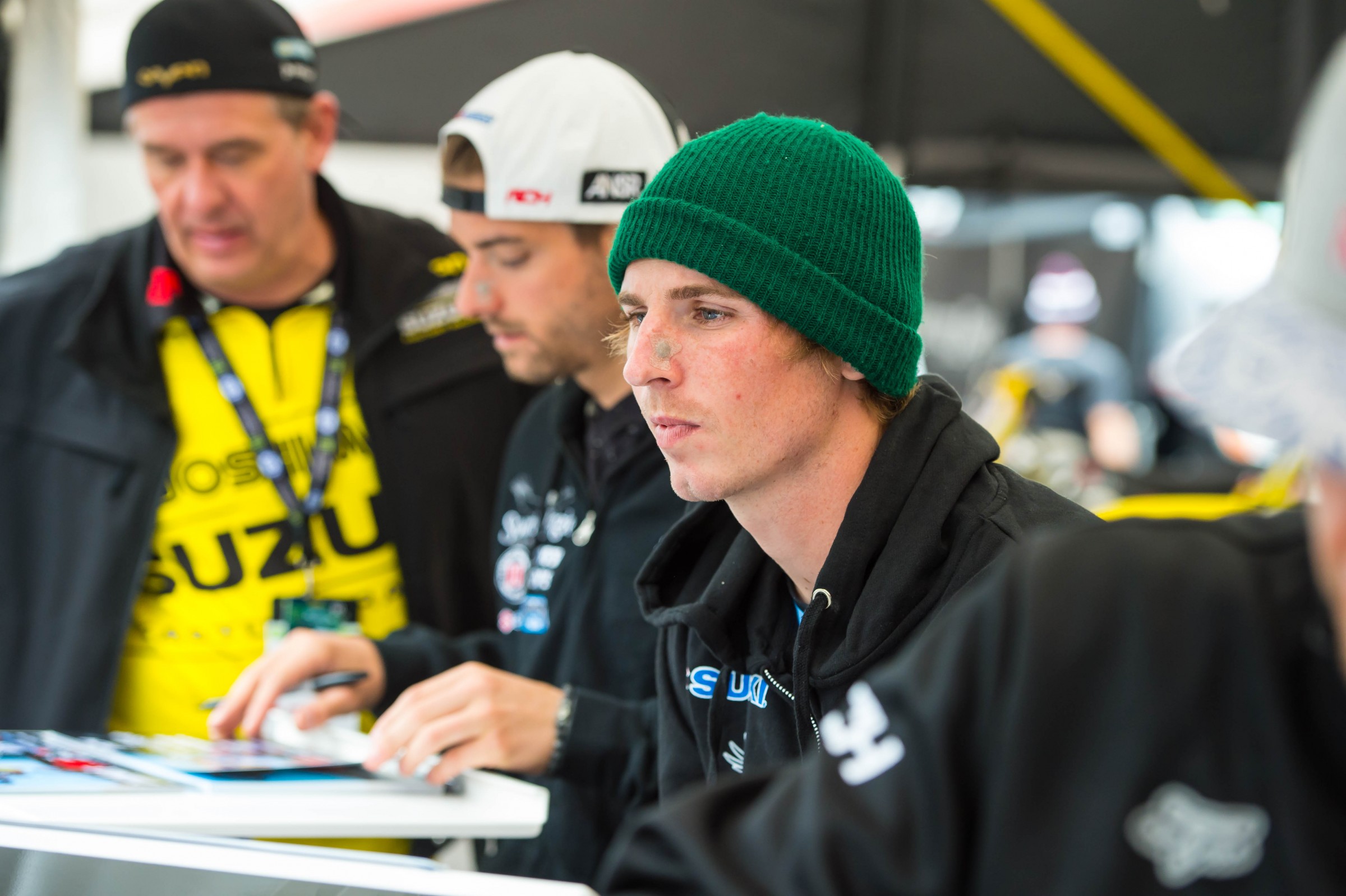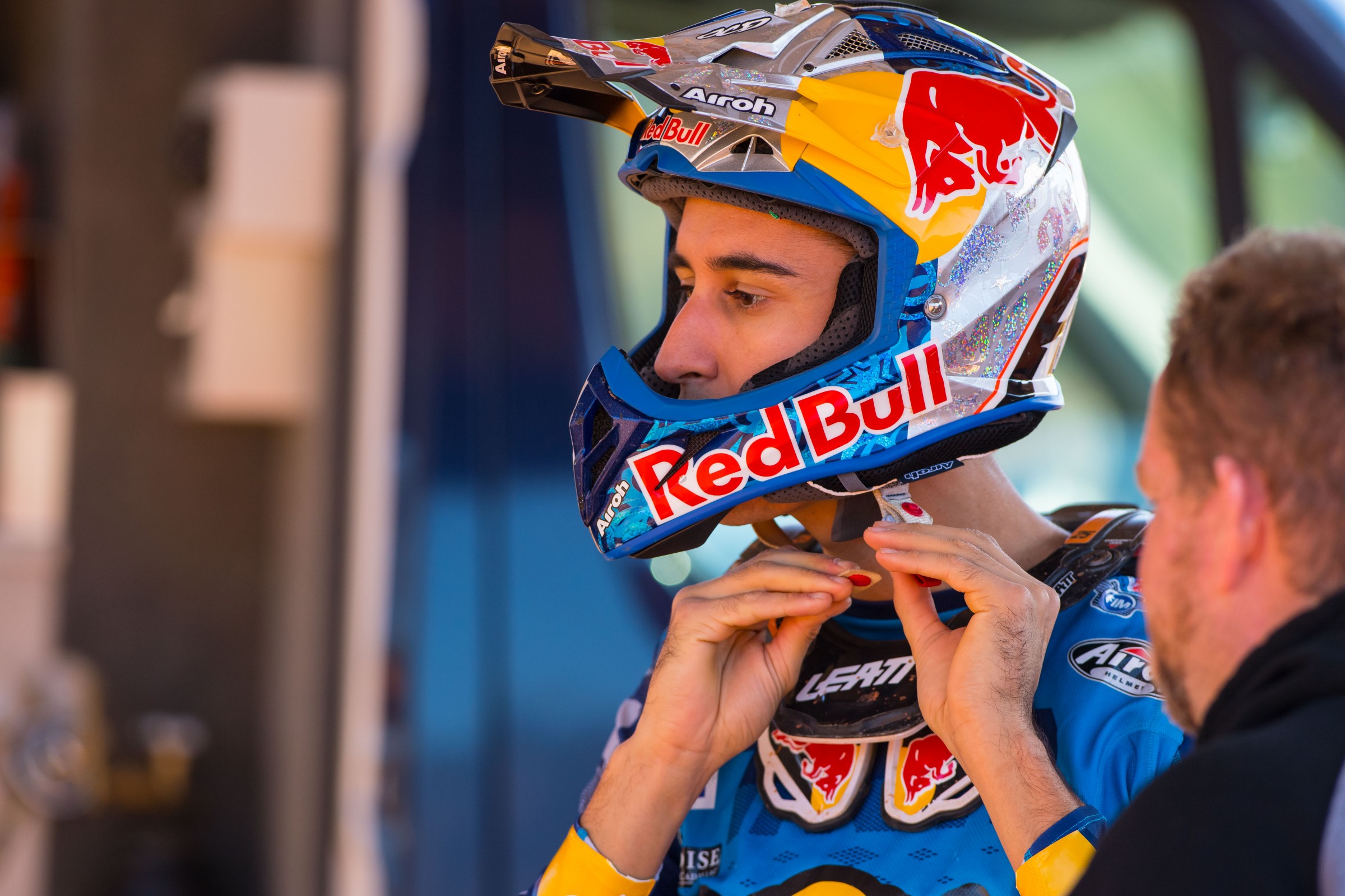 The treat: Anderson is an American hero—and also a tragic one—for winning a Motocross of Nations moto with a broken foot, and then getting landed on and knocked out of the event. That was incredibly unlucky, but he’s also incredibly lucky that he didn’t get hurt worse. We saw Anderson hanging out at Red Bull Straight Rhythm and he said he was only knocked out for a few seconds in Italy, so the head injury wasn’t as severe as it looked, and his neck didn’t even hurt. After some foot surgery, he’s already back on a bike. Otherwise, he continues the same program—trainer, bike, and team.