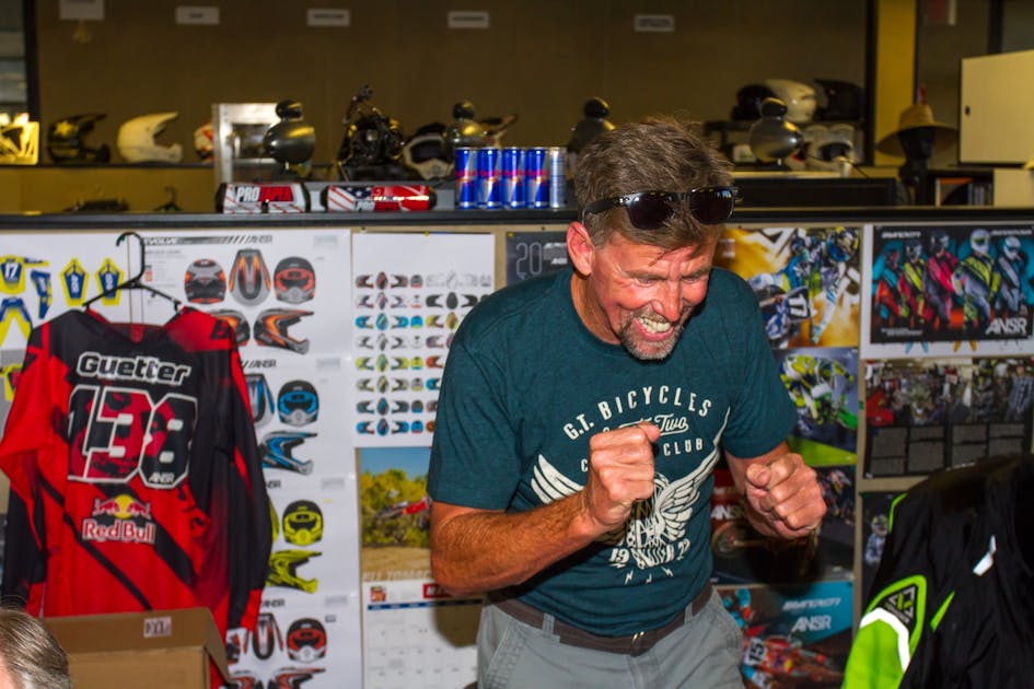 When I first started racing I came from the desert and I’d never been on an airplane, I’d never been anywhere. I had been to L.A. a few times, but I was a desert rat. I had no background doing anything. I lived in the desert, rode motorcycles a lot and raced bicycles, but that was it. I didn’t know jack about the real world. I came down to ride and I went on the tour [to the races] the first year. Well there were guys Brian Lunniss, Bill Buchka, a guy named Don Dodeck, Ed Scheidler, probably guys you don’t know, but they were all characters and all veterans. Some of them have a sense of humor that are … well I liked it. Nothing bothered me. They used to do stuff to [Broc] Glover and he’d be crying. People would say, ‘Don’t these guys bother you?’ I’d say, ‘Ah, I don’t care.’ It was brand new to me. So they would torture us. We were always fighting, tearing the crap out of rooms. We’d be fighting and tearing these things off the walls, I’m surprised we didn’t kill each other. The guys are always beating the crap out of me, and I was the punching bag, the new guy. So Danny Turner who was a factory guy then who had just been hired with Rick Burget and myself. So Danny calls me and says, ‘Come next door they’re killing me over here!’ So I go in and the slam the door behind me. All the mechanics were in there. They grab me, they stripped me, put me in a chair, they duct taped me, and then carry me to the elevator at this big hotel, push lobby, and put a sign on me that says ‘Please Help, Naked.’ And then they hit the button and off the elevator goes. Now I’ve got a duct taped mouth, I’m sitting in the chair naked with the sign and I’m not kidding when I got to the lobby it opens up to 50 people. That was just the constant abuse. Some of the riders didn’t like it, I thought it was fun. I came from the desert so I thought, Hey, this is good attention.