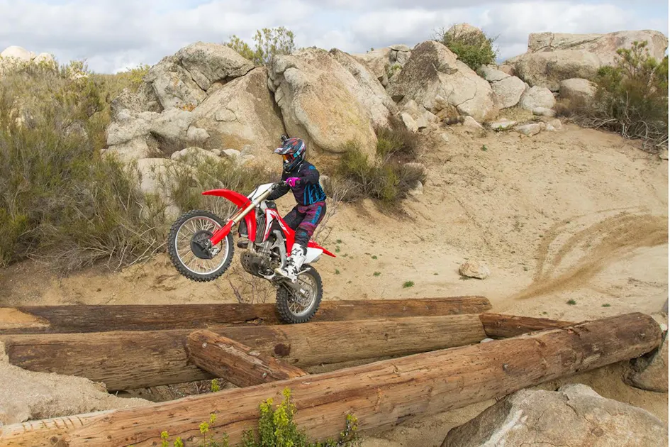 As a brand-new model, Honda’s CRF450RX boasts most of the features of its motocross-directed sibling, but in a package that’s designed for closed-course off-road riding and racing. Among the features that distinguish it from the CRF450R are a smoother ignition map and standard electric start (with kick-start backup), while chassis differences include off-road-focused suspension settings, a revised cylinder-head hanger and changed wheel hubs and axles. The CRF450RX also comes with off-road-appropriate components like a larger plastic fuel tank, forged-aluminum side stand, 18 inch rear rim and Dunlop Geomax AT81 tires, making it the ultimate weapon for events like those in the GNCC series.
