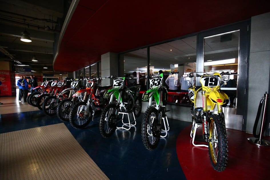 The skies were gray and the weather was rainy on Thursday, but that didn’t remove one bit of sheen or shine from the festivities at Angel Stadium, in Anaheim, California. Monster Energy AMA Supercross looked glorious, with a packed house of real media asking real questions, a packed stage full of talented, prepared, capable riders, and a paddock on the other side housed with trucks and teams looking bigger and better than ever. One rider even wore a suit! (Ken Roczen, trying to look next level and dress like NBA and NFL players do during their press conferences.) Supercross really does get bigger and better every year. Maybe not more hyped or more competitive, but always more polished. I don’t have a number on the “bigness.” I just know that anyone who showed at the stadium today would think that this is clearly a big deal.